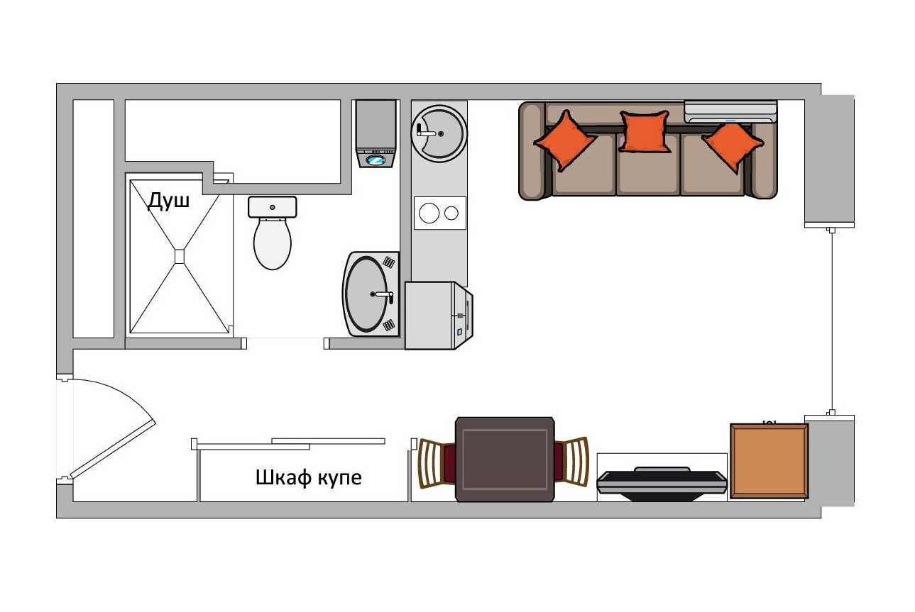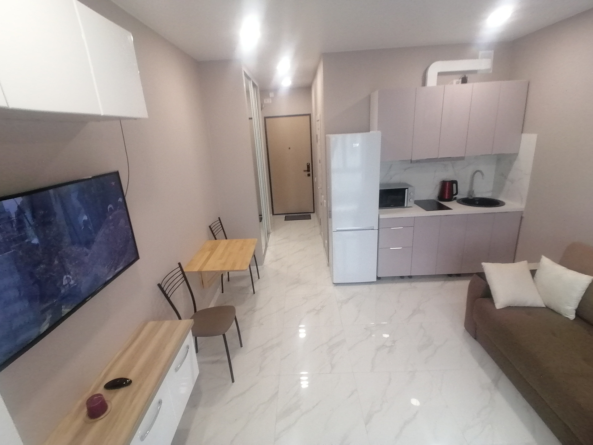 В наличии вся необходимая мебель (встроенный шкаф купе, кухня, мебель в комнате, хороший двухспальный диван) и бытовая техника (кондиционер, цифровое ТВ, интернет, стеклокерамическая электроплита, микроволновая печь, вытяжка, большой холодильник, стиральная машина). В санузле установлена душевая кабина в строительном исполнении, водонагреватель, гигиенический душ.