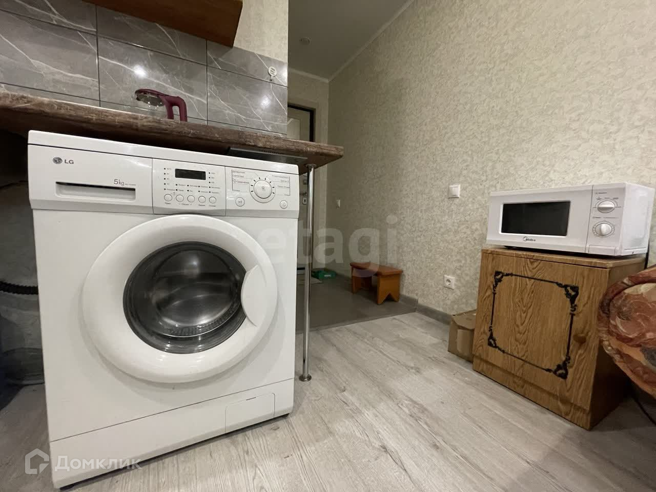 Квартира полностью готова к проживанию: сан узел в плитке (очень чистенький), холодильник, микроволновая печь и холодильник. Дополнительное увеличение за счет площади балкона, окна пластиковые