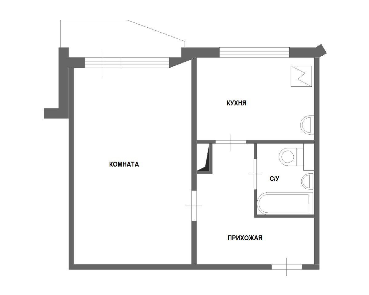 Балкон, лоджия 1 балкон