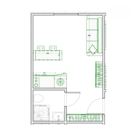 Общая площадь 17.4 м2