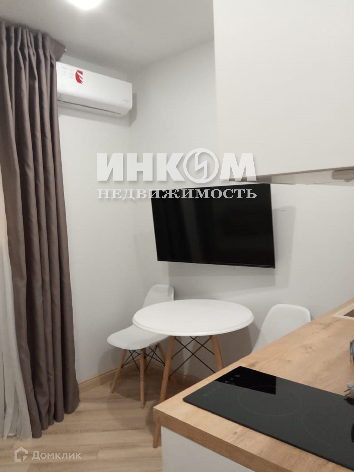 Студия полностью оборудована для комфортного проживания: дизайнерский качественный ремонт, в комнате есть холодильник, плита, телевизор, кондиционер, микроволновая печь, посуда, постельное бельё.