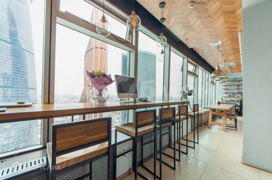 Апартаменты полностью укомплектован современной мебелью и техникой, необходимой для ведения бизнеса. Панорамные окна с видом на "Москва-Сити".