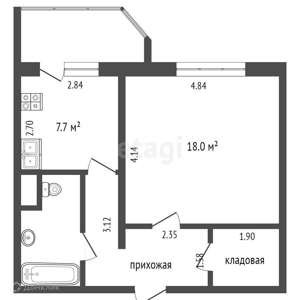 Балкон, лоджия 1 балкон