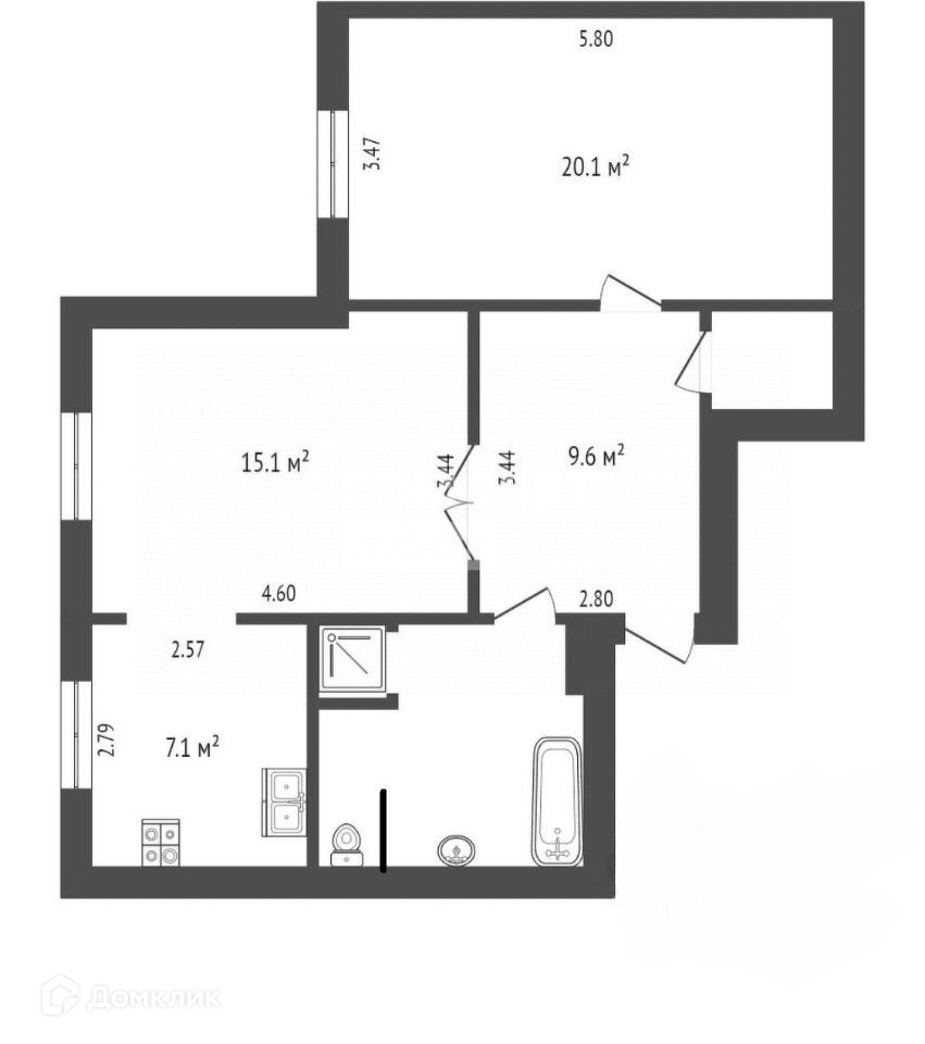 Жилая площадь 35.2 м2
