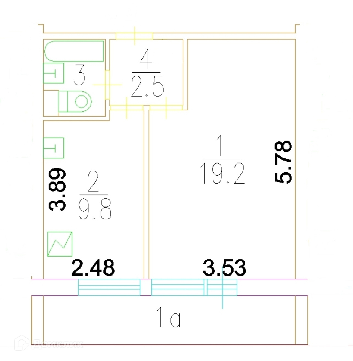 Общая площадь 37.8 м2
