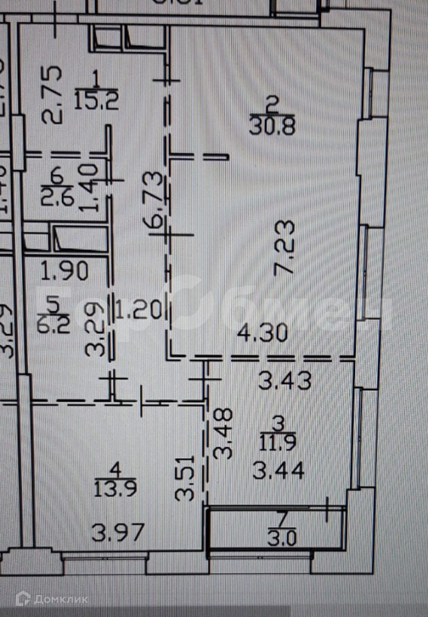 Жилая площадь 44.7 м2