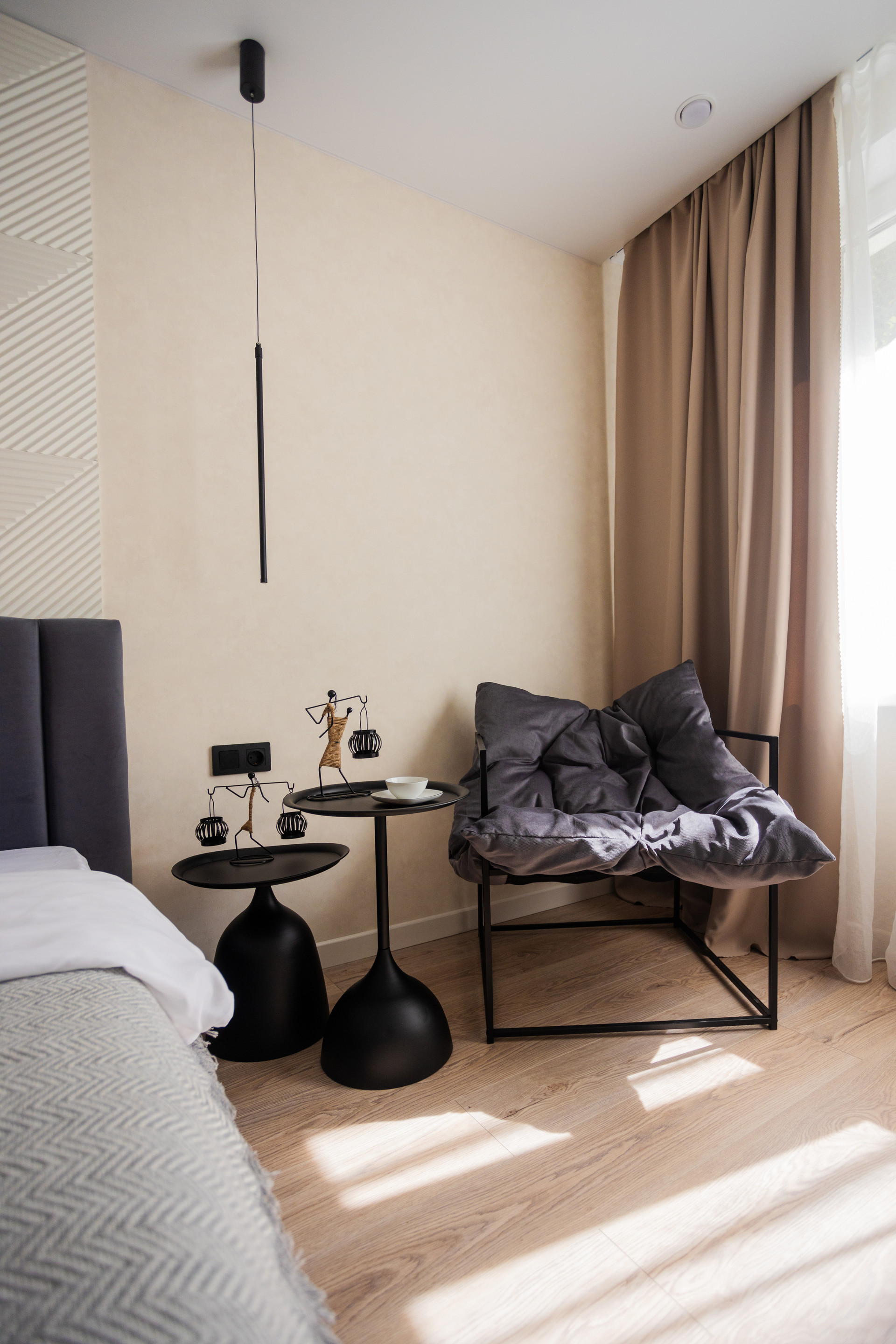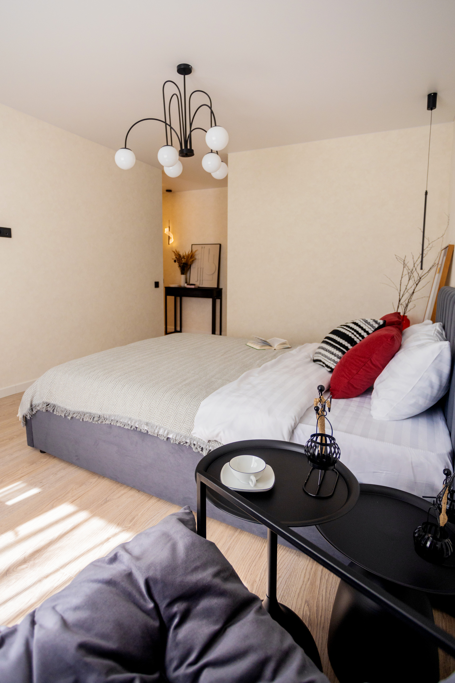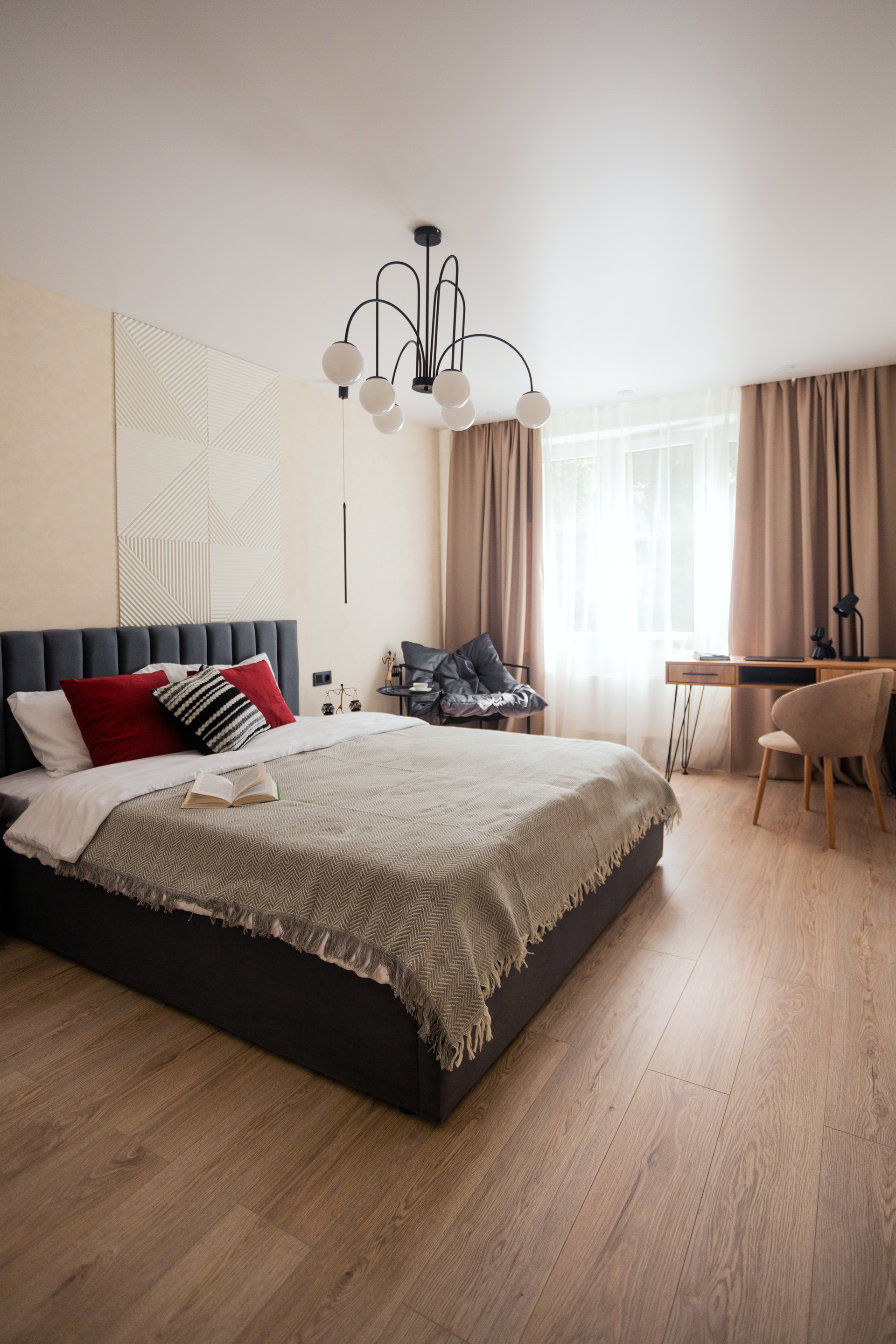 Очень уютная, тихая и светлая квартира после дизайнерского ремонта. Окна выходят во двор, под окном огромные кусты сирени. В комнате двухспальная кровать с подъемным механизмом для хранения, рабочая зона и зона отдыха. Большая гардеробная, которую можно дополнять секциями. На кухне вся новая техника: холодильник, вытяжка, посудомойка, варочная панель и духовка. В ванной - стиральная машинка и хорошая сантехника.