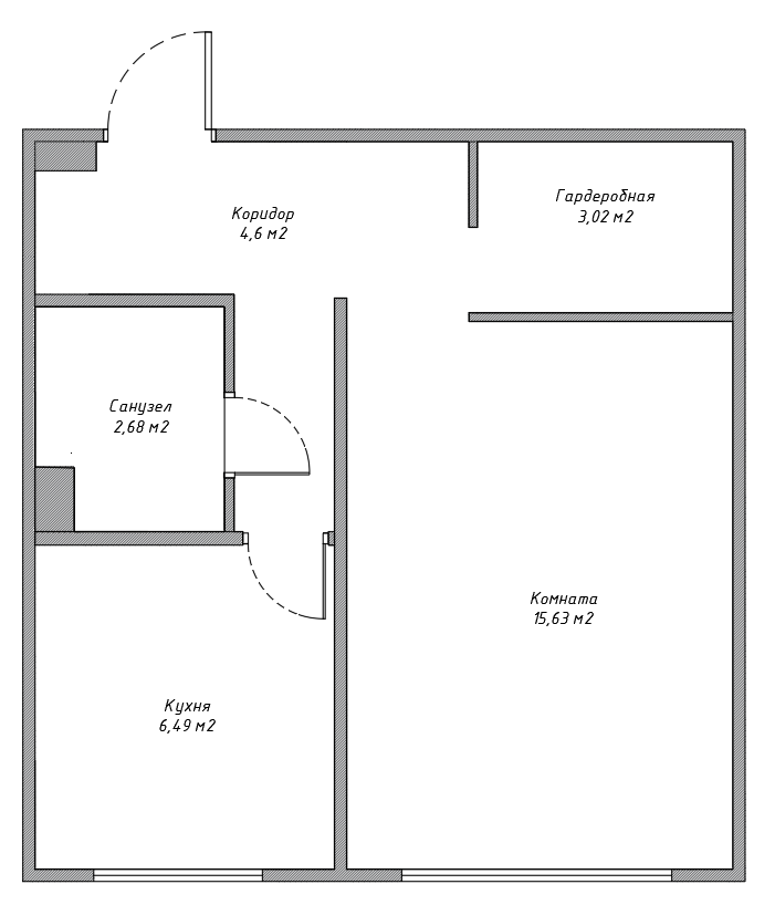 Жилая площадь 26.3 м2