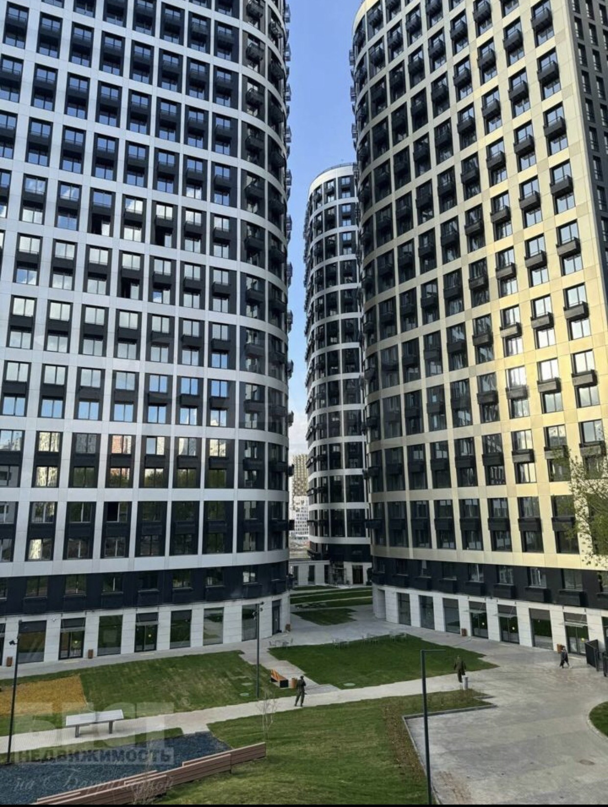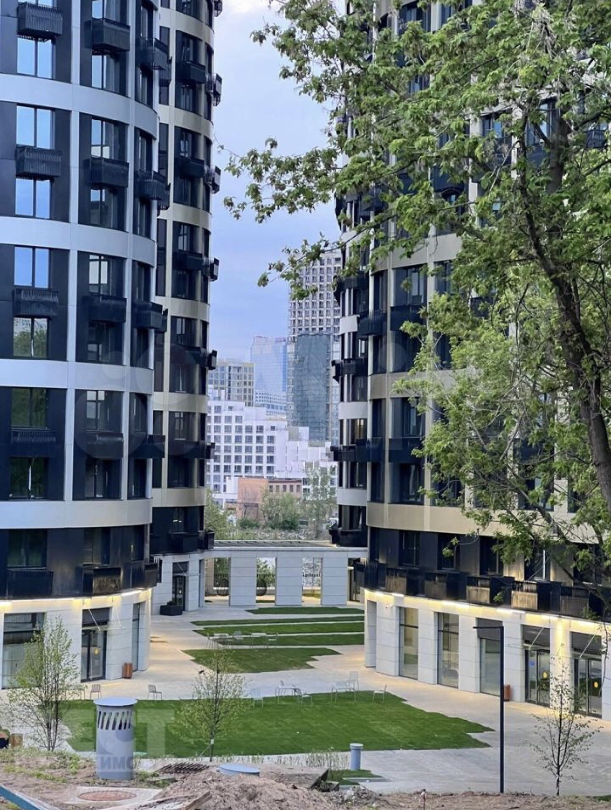 На внутренней территории комплекса предусмотрена уникальная концепция благоустройства: современный двухуровневый двор с тихой приватной зоной с живописными видами на Москва-реку на крыше стилобата,с детскими площадками, зоной для воркаута,и целым полем для игры в волейбол.