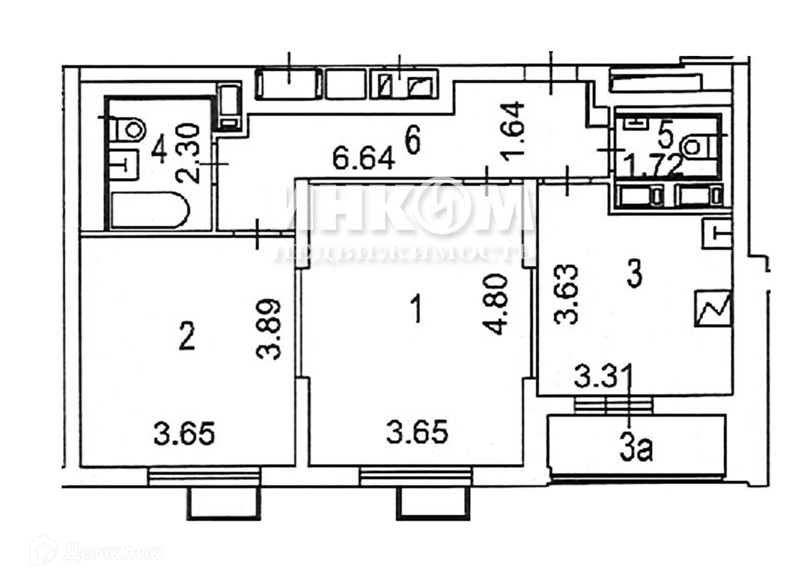 Общая площадь 58.2 м2