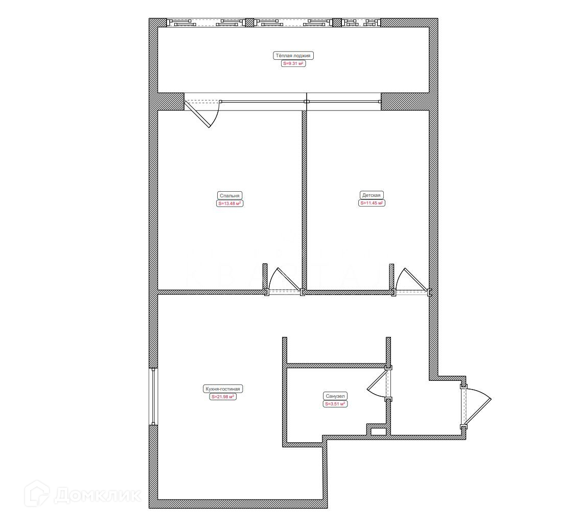 Общая площадь 55 м2