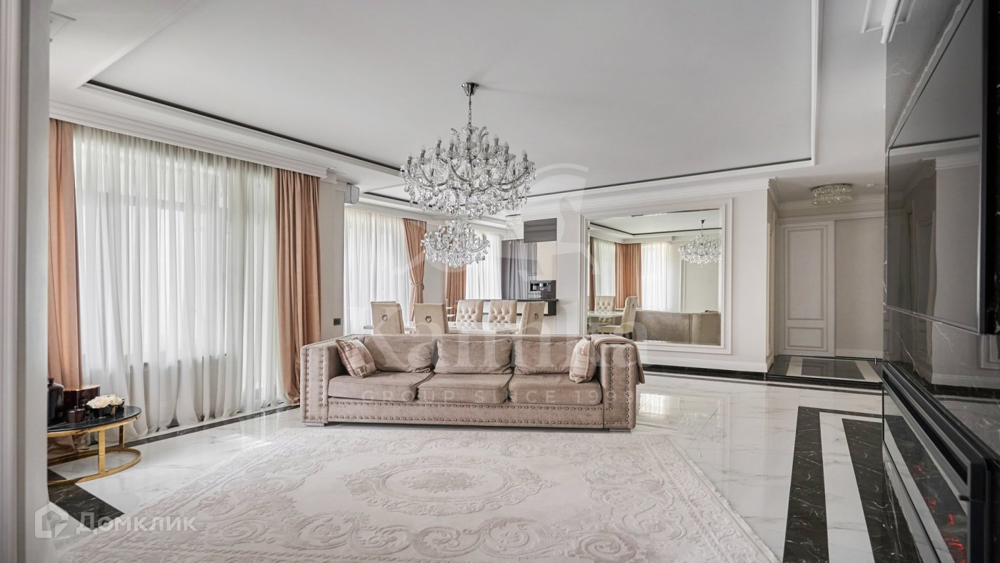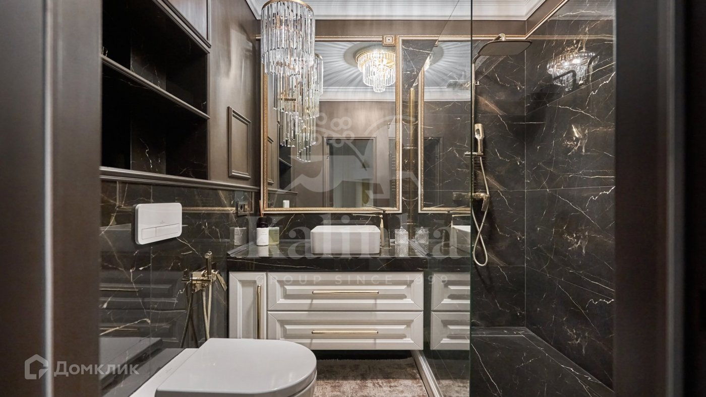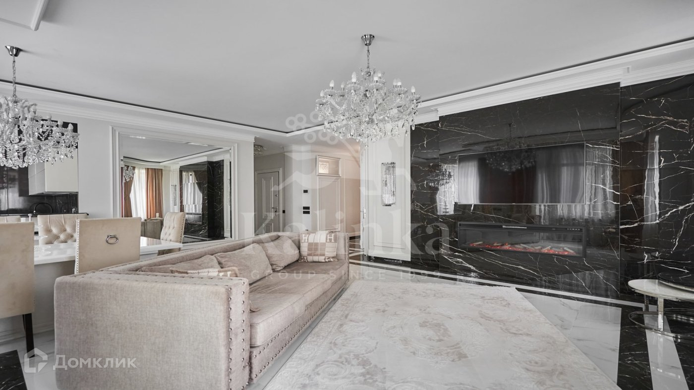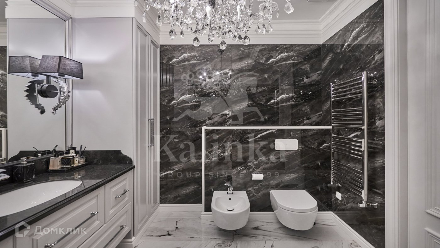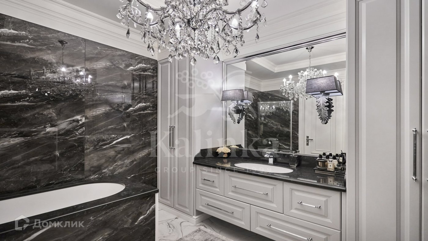Квартира с дизайнерской отделкой в стиле современная классика. Премиальная мебель, бытовая техника Miele. Санузлы Villeroy Boch. В отделке использованы мрамор, гранит, кварцевый агломерат. Полы с подогревом.