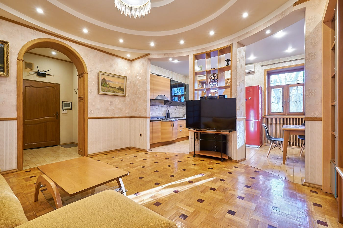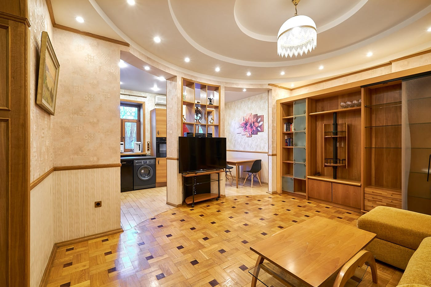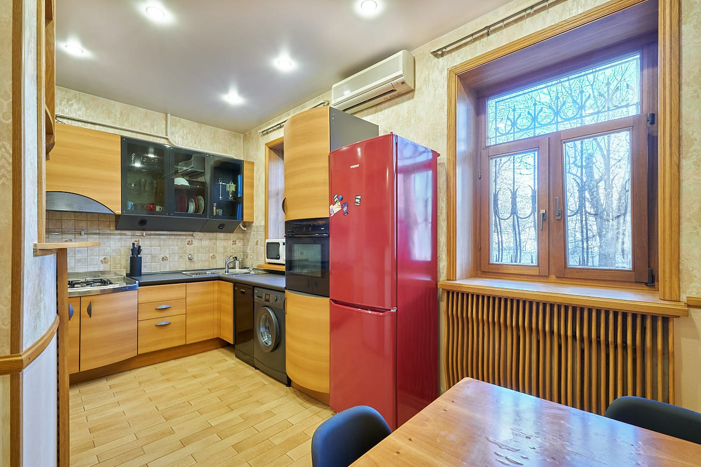 Квартира в стиле неоклассики с высокими потолками, красивым дубовым паркетом с орнаментом, качественными дубовыми стеклопакетами и радиаторными решетками в едином стиле. В квартире 2 спальни и 1 большая гостиная с 2-мя окнами, совмещенная с кухней-столовой, просторная совмещенная ванная комната (6 кв.м) с окном. В холле-коридоре - небольшая гардеробная. В одной из спален, помимо шкафов, также гардеробная с дверью купе. Квартира полностью меблирована. Вся необходимая техника на кухне: стиральная, посудомоечная машины, духовка, газовая варочная панель, вытяжка, холодильник. 2 кондиционера.