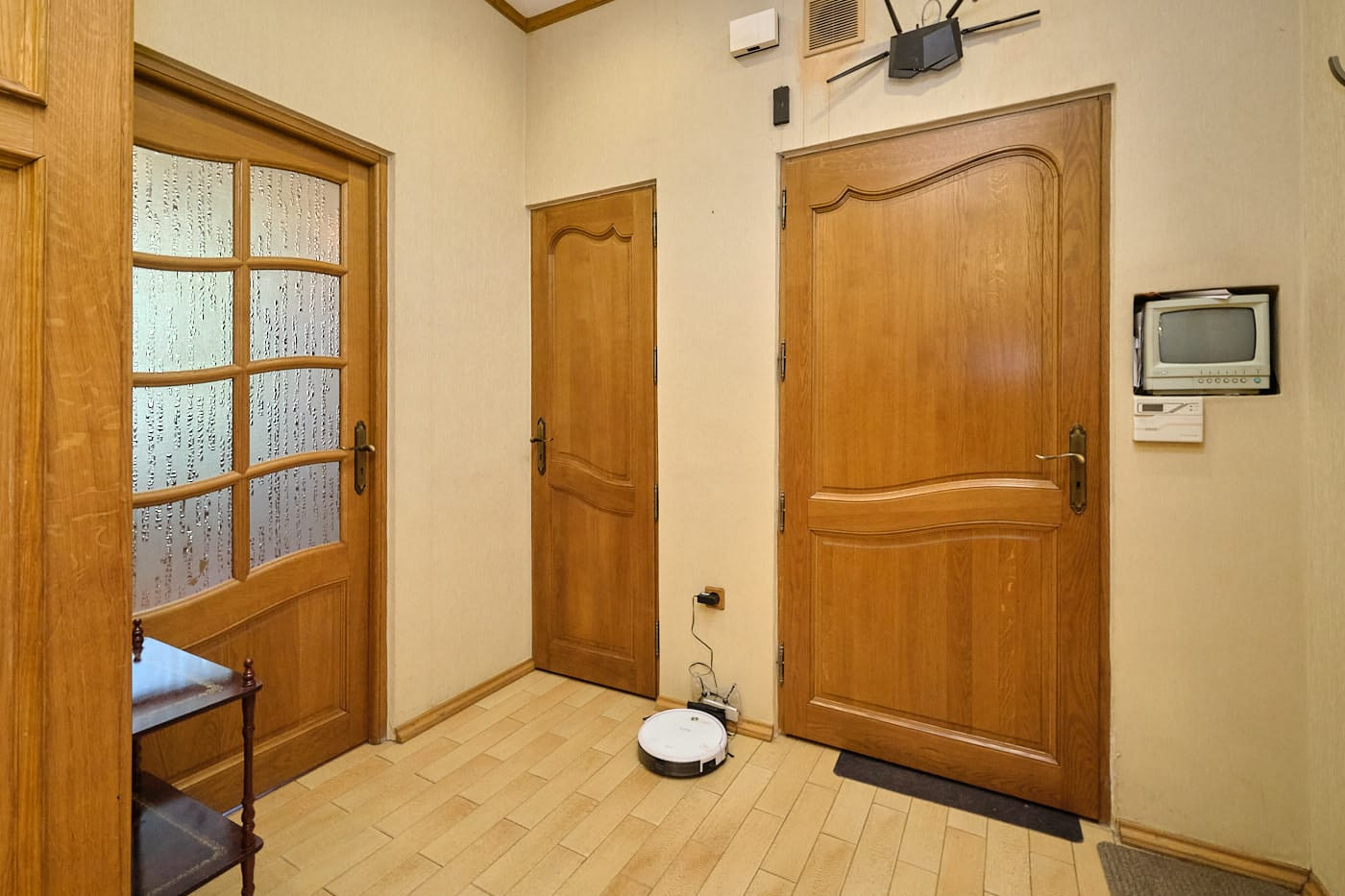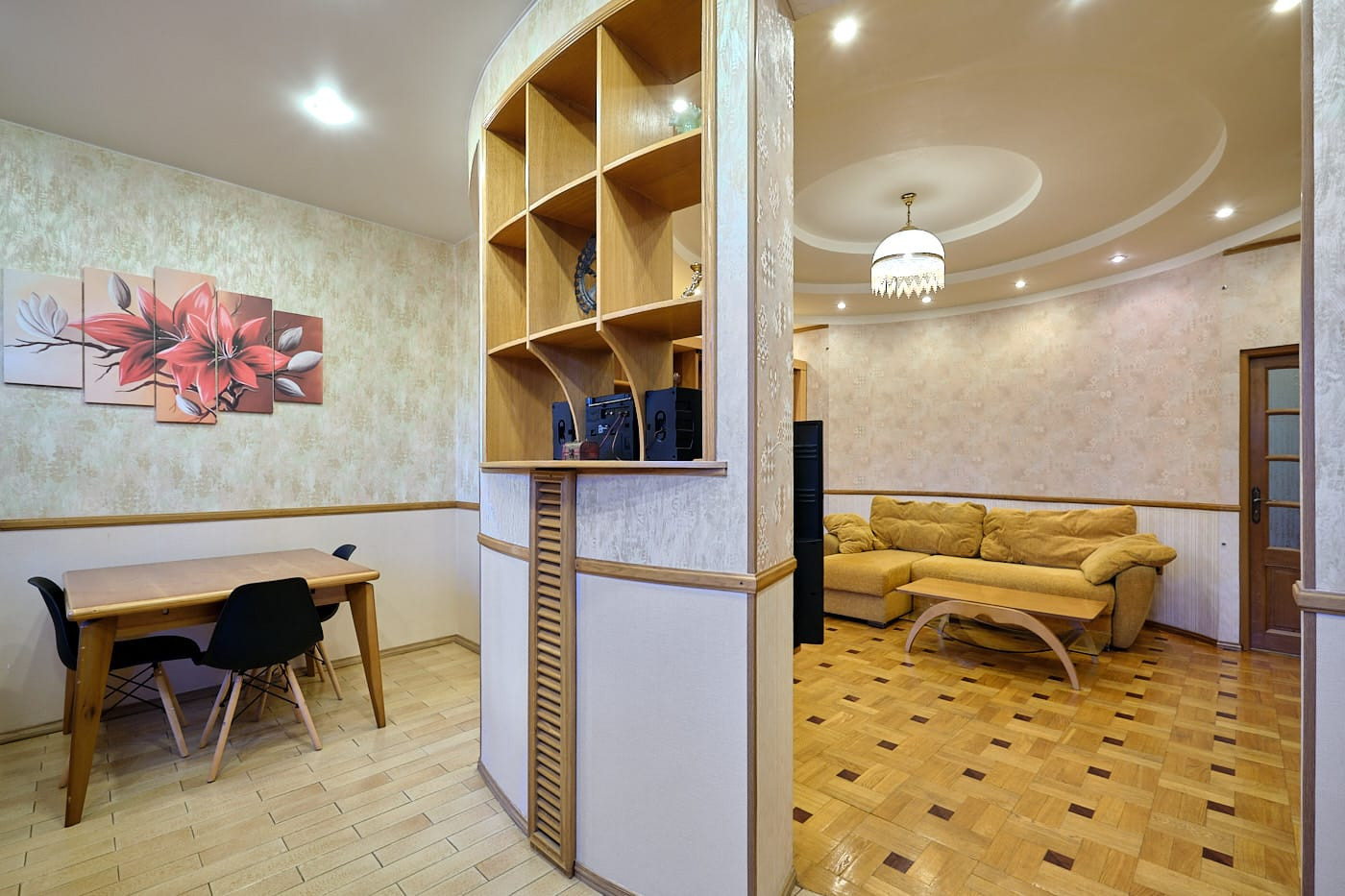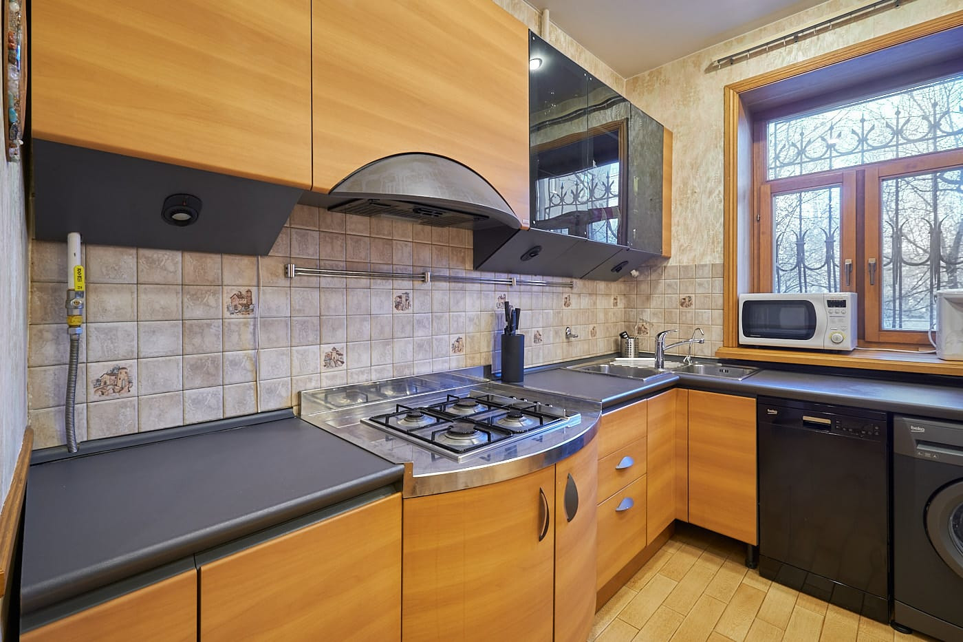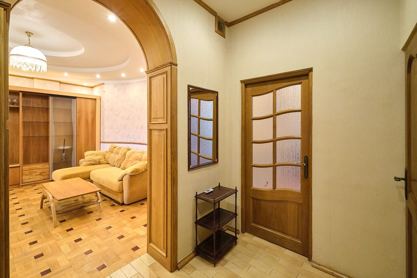 Квартира в стиле неоклассики с высокими потолками, красивым дубовым паркетом с орнаментом, качественными дубовыми стеклопакетами и радиаторными решетками в едином стиле. В квартире 2 спальни и 1 большая гостиная с 2-мя окнами, совмещенная с кухней-столовой, просторная совмещенная ванная комната (6 кв.м) с окном. В холле-коридоре - небольшая гардеробная. В одной из спален, помимо шкафов, также гардеробная с дверью купе. Квартира полностью меблирована. Вся необходимая техника на кухне: стиральная, посудомоечная машины, духовка, газовая варочная панель, вытяжка, холодильник. 2 кондиционера.