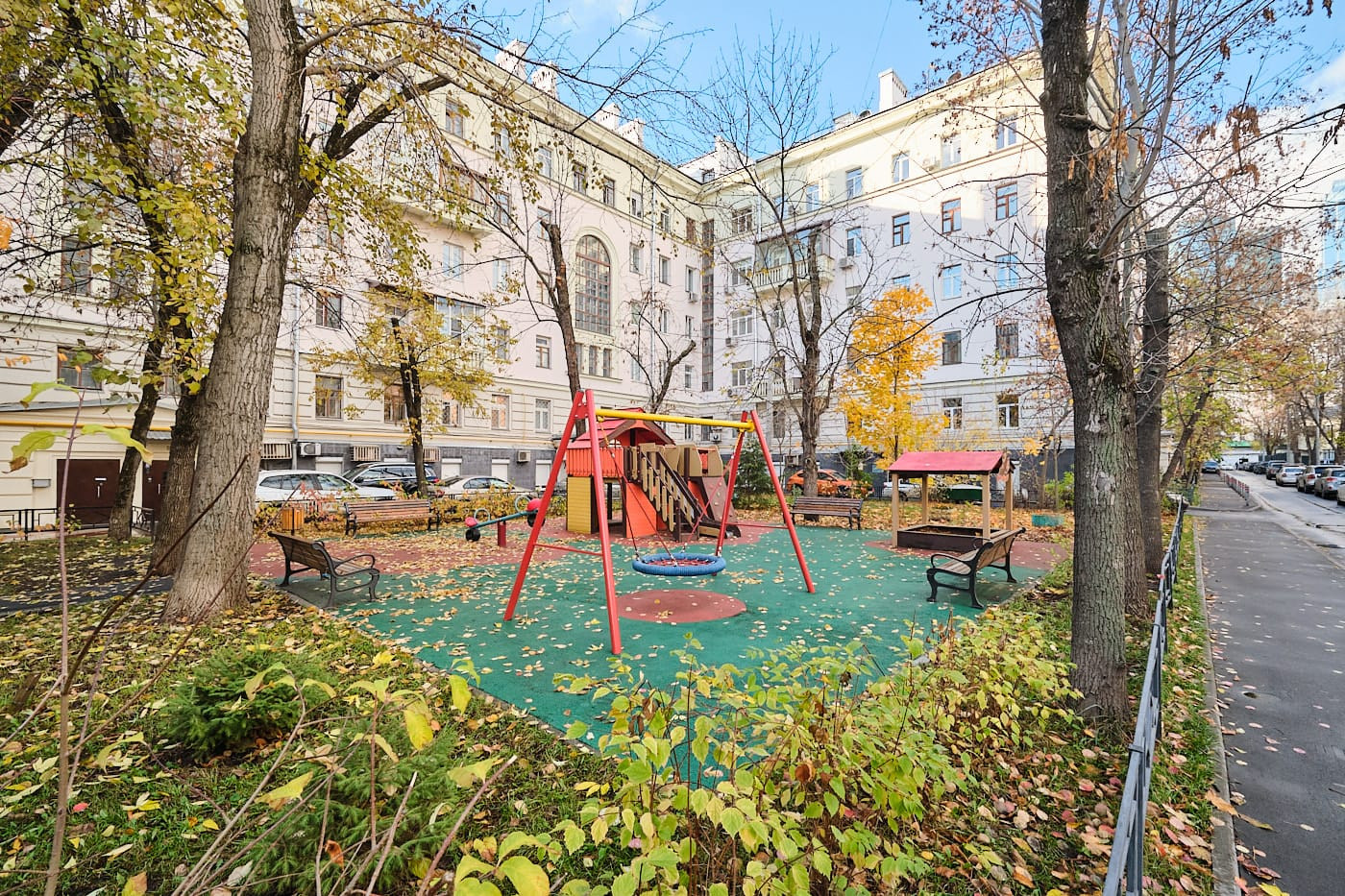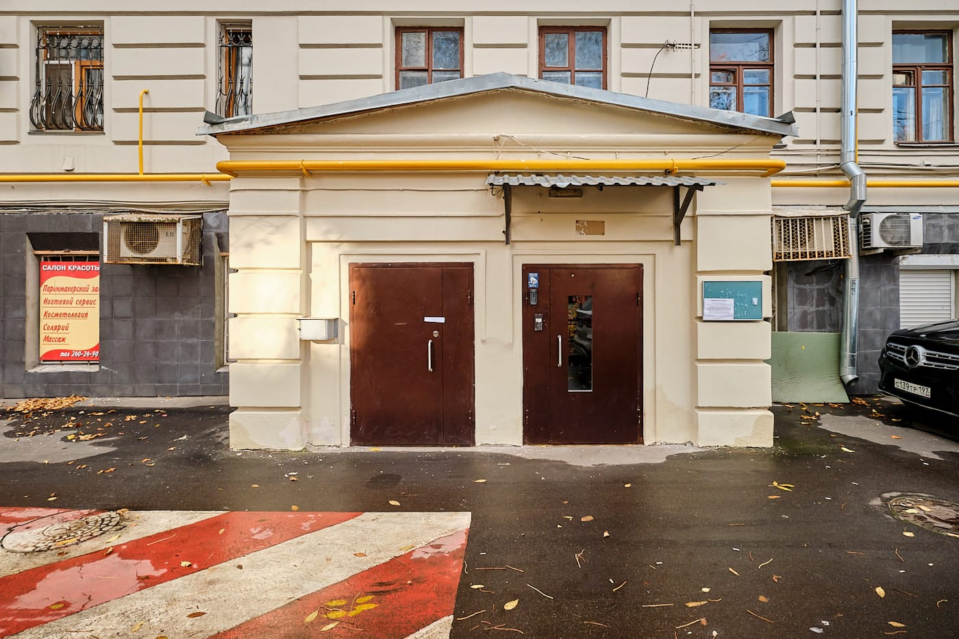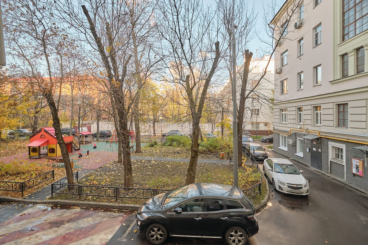 Свободная парковка в закрытом дворе со шлагбаумами, с возможностью заезда-выезда на 2 улицы: Кутузовского пер. и ул. Студенческая.