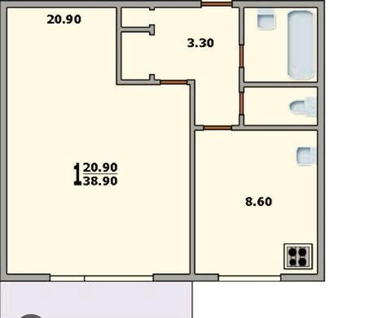 Общая площадь 39 м2