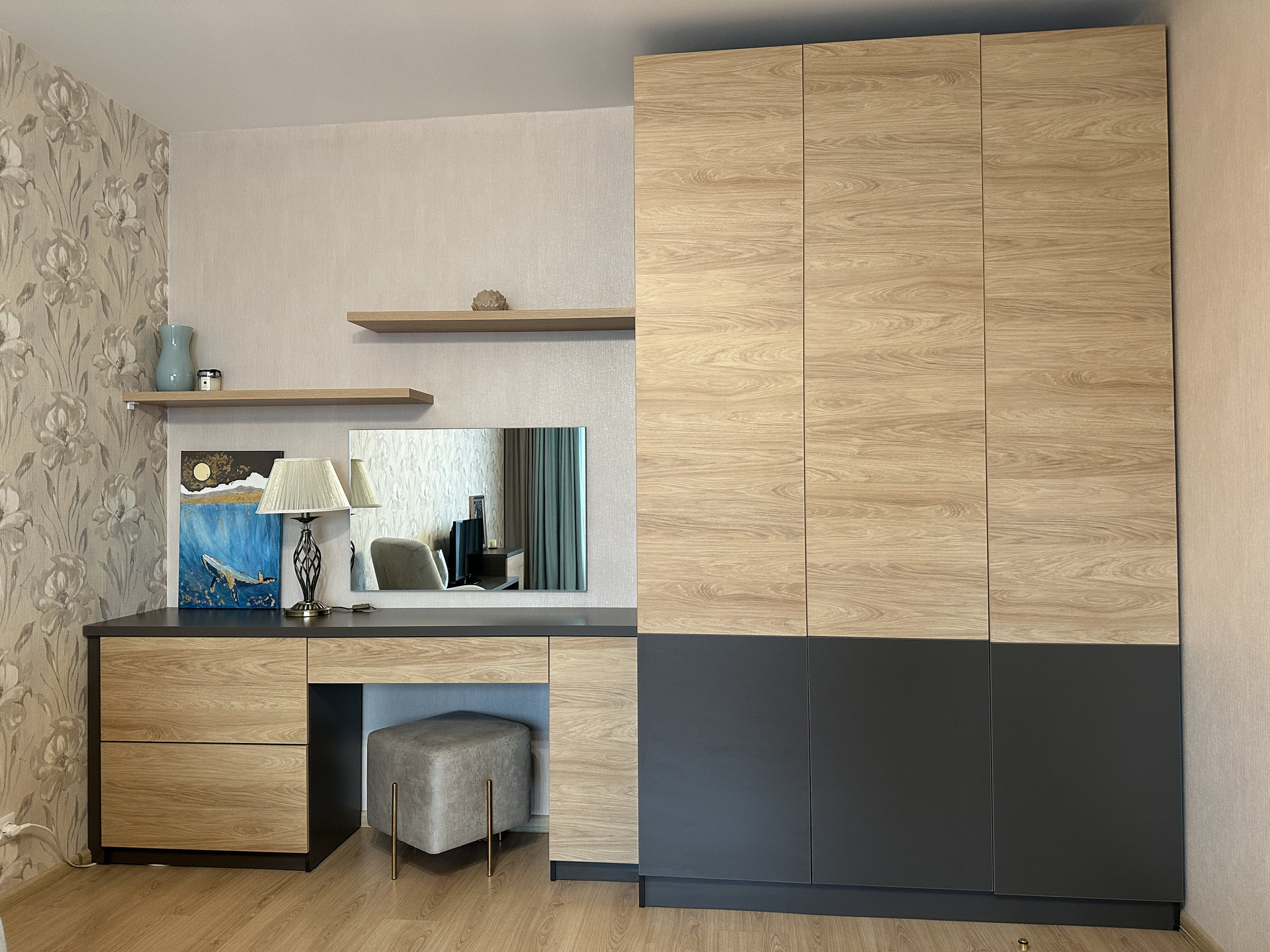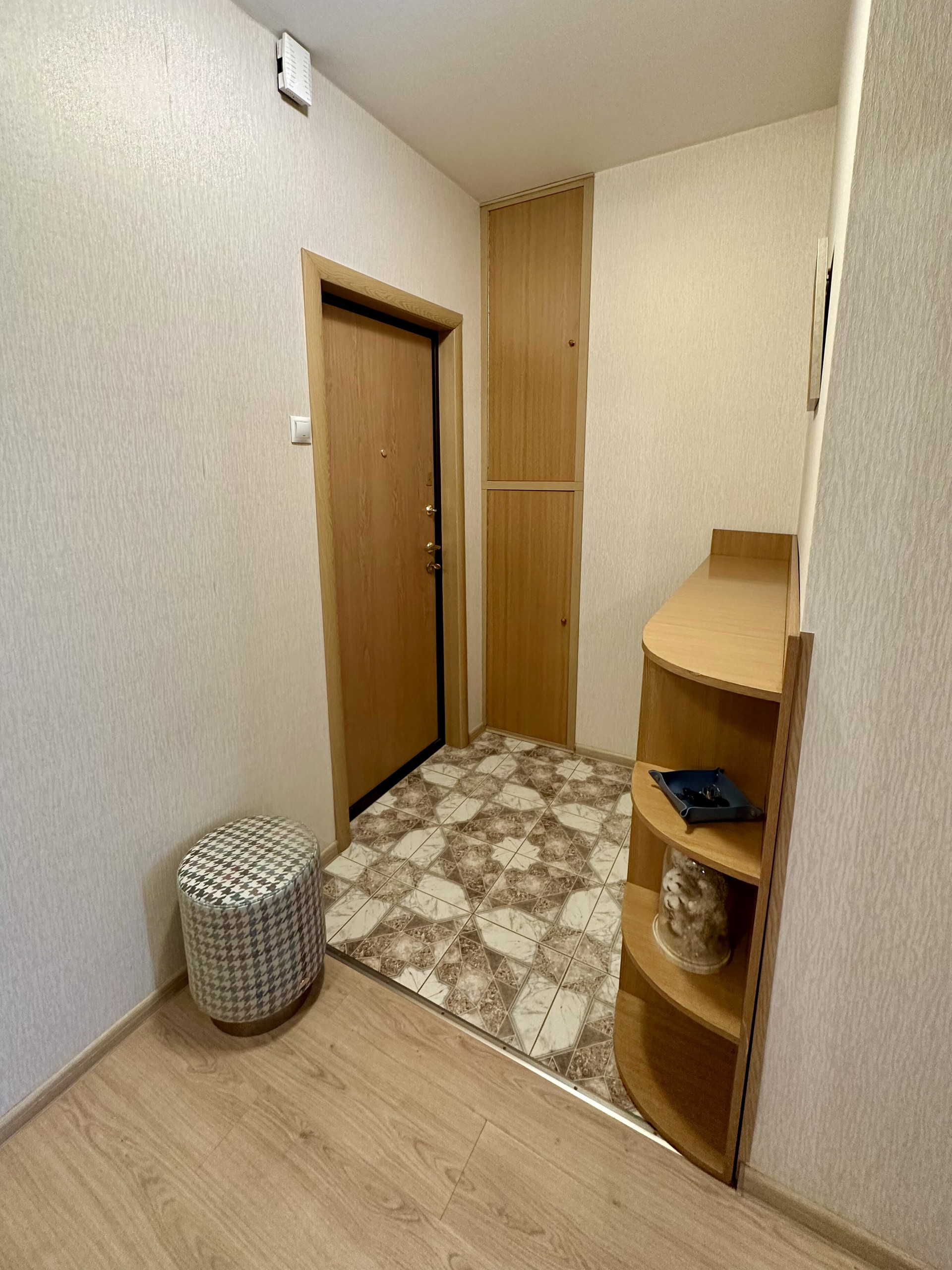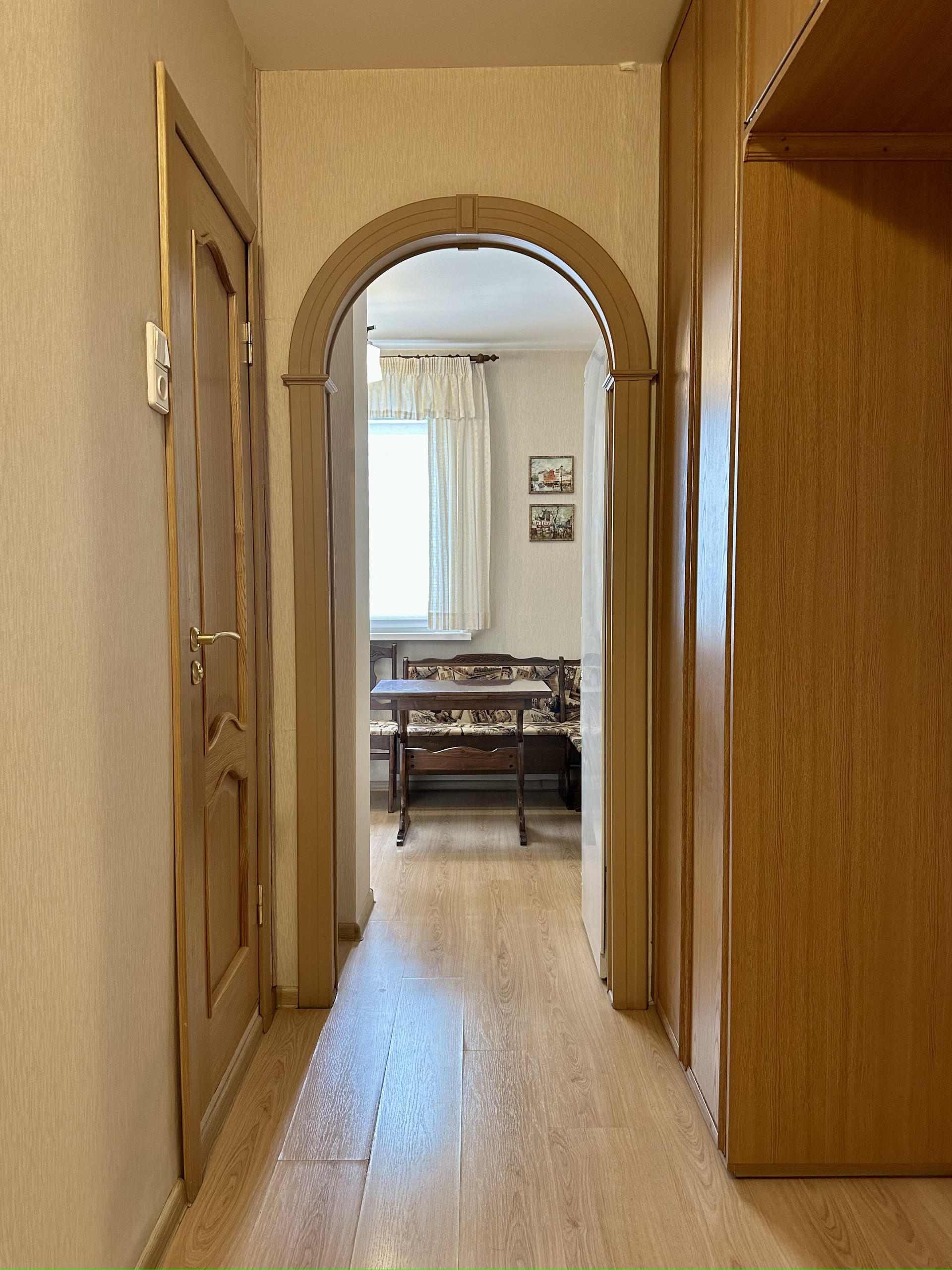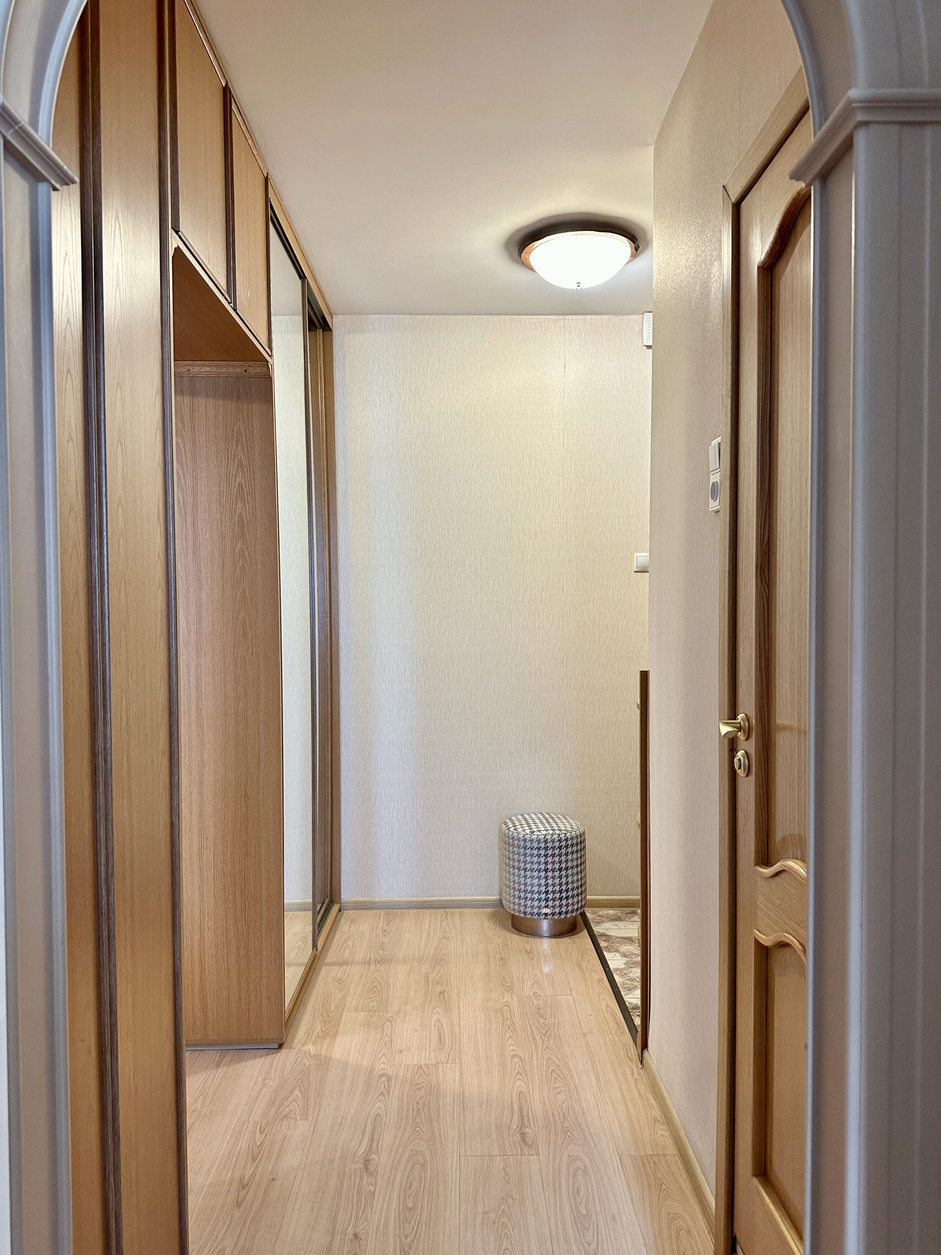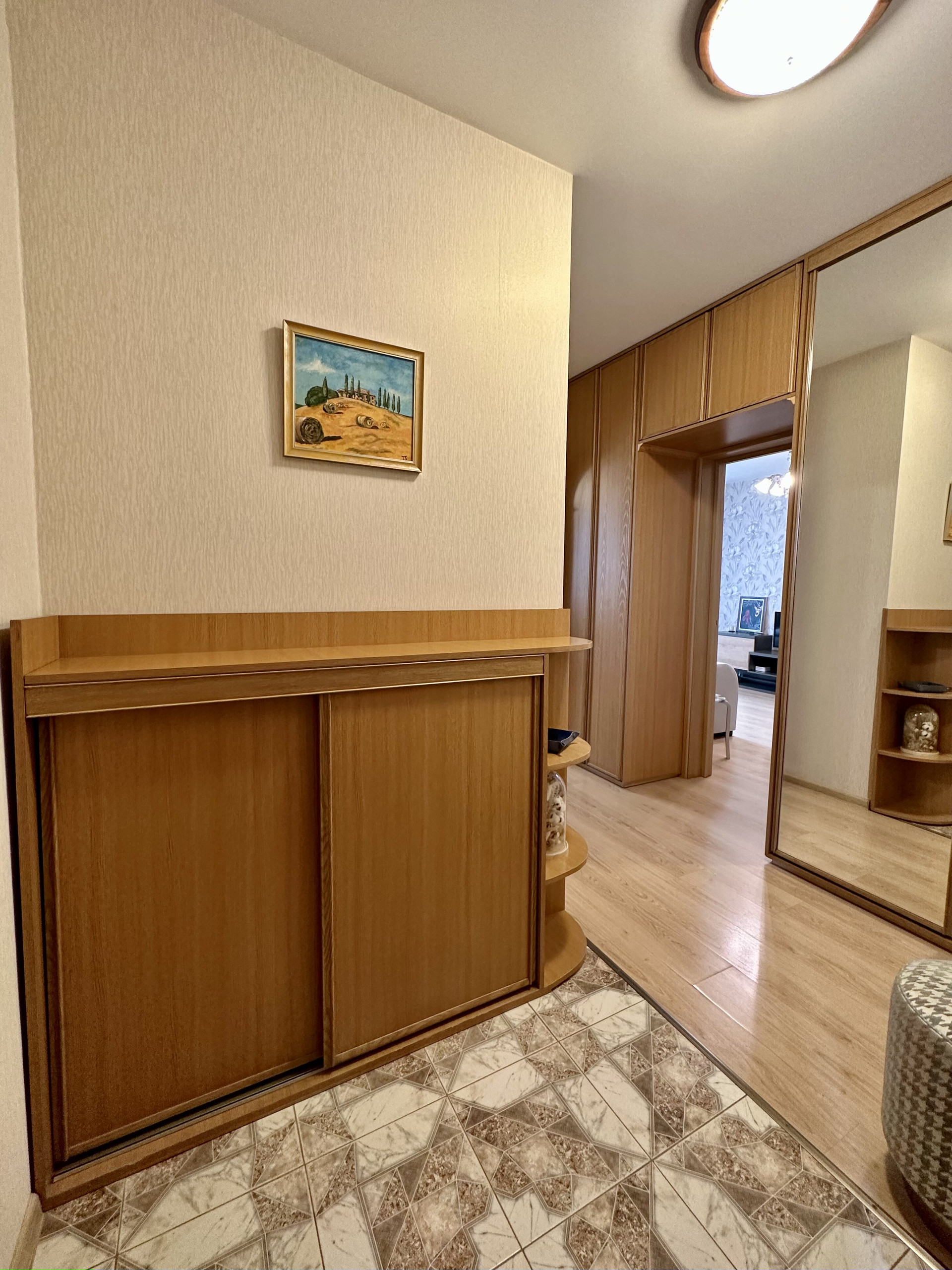 Квартира с ремонтом (делали для себя), оборудована мебелью с большими возможностями для хранения, что позволяет сразу въехать и жить. Просторная жилая площадь в 18.9 кв. м. и кухня площадью 8.5 кв. м. Санузел совмещенный, окна выходят во двор, есть балкон.