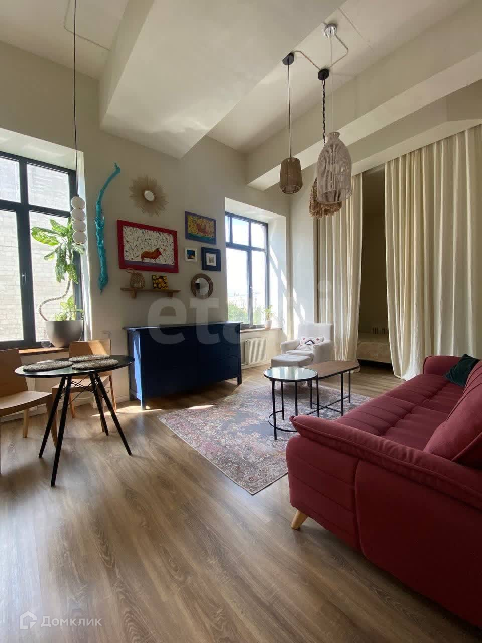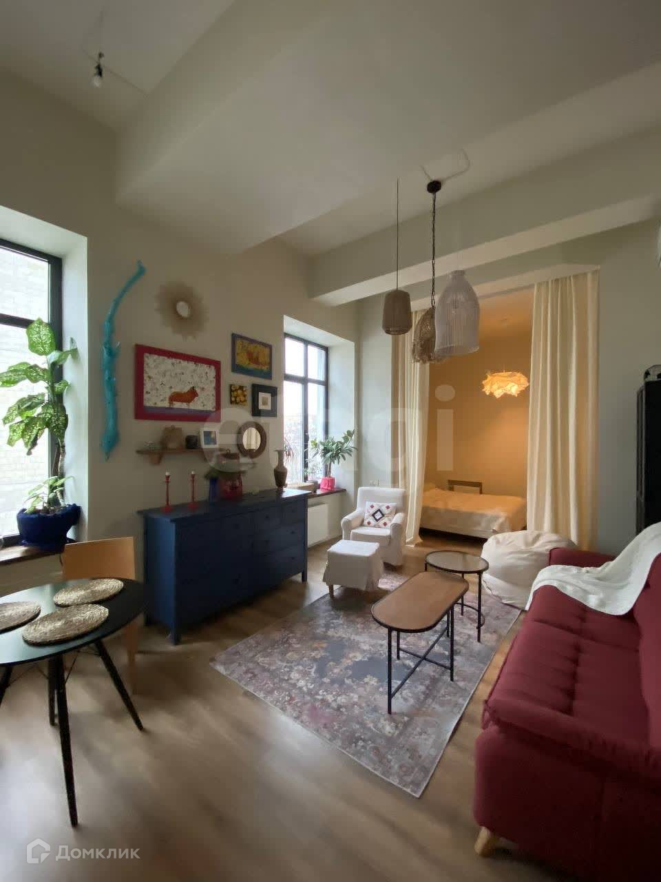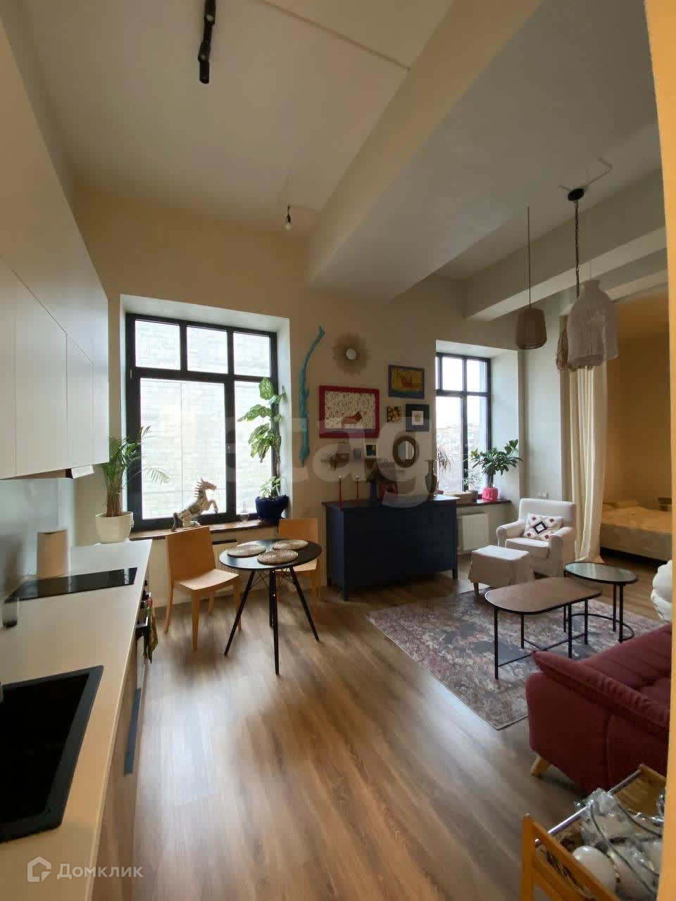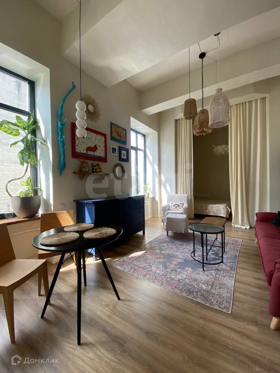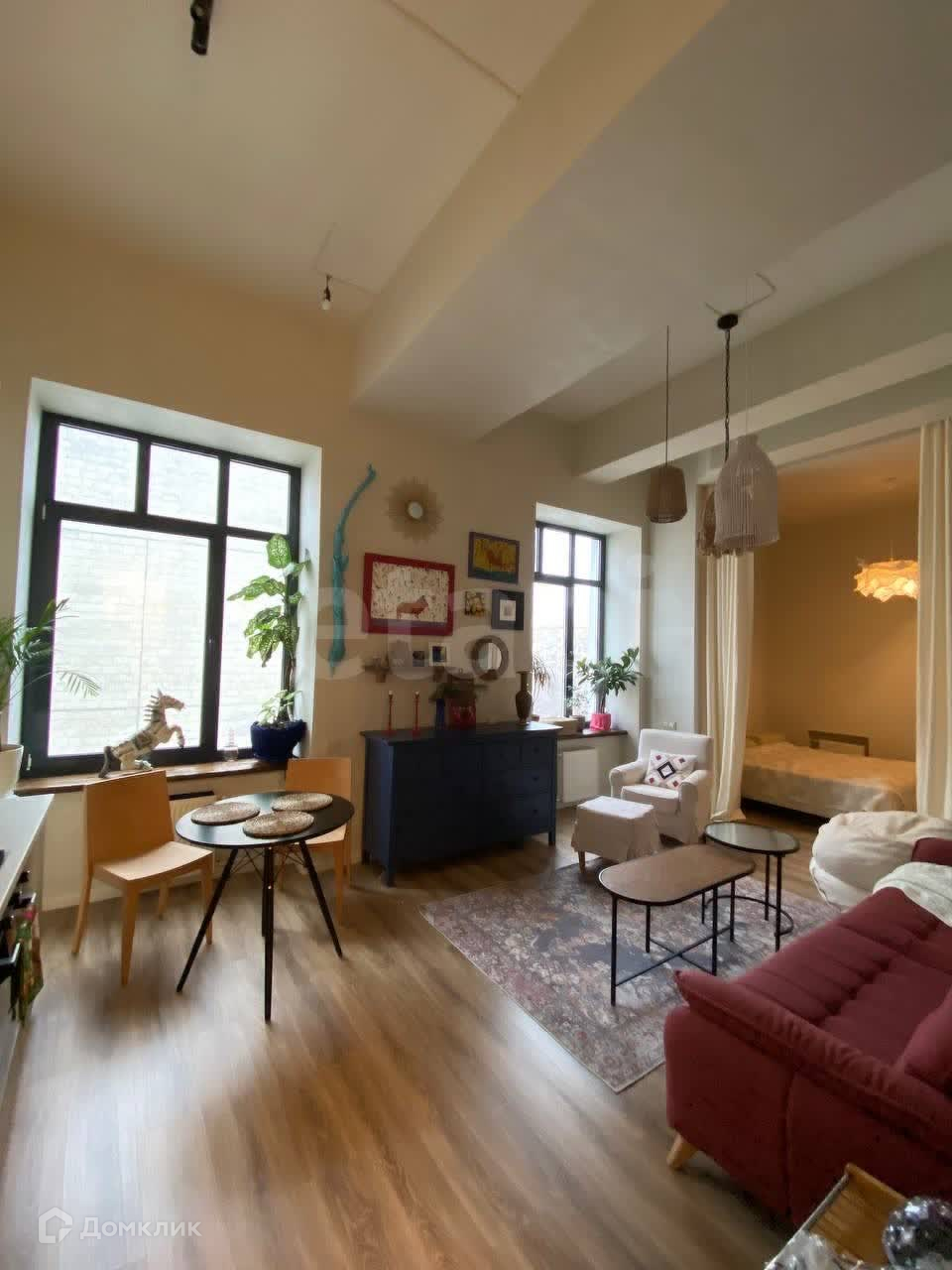 Санузел совмещенный, стиральная машина установлена. Высота потолков 4 метра. Техника и мебель после продажи остаются.