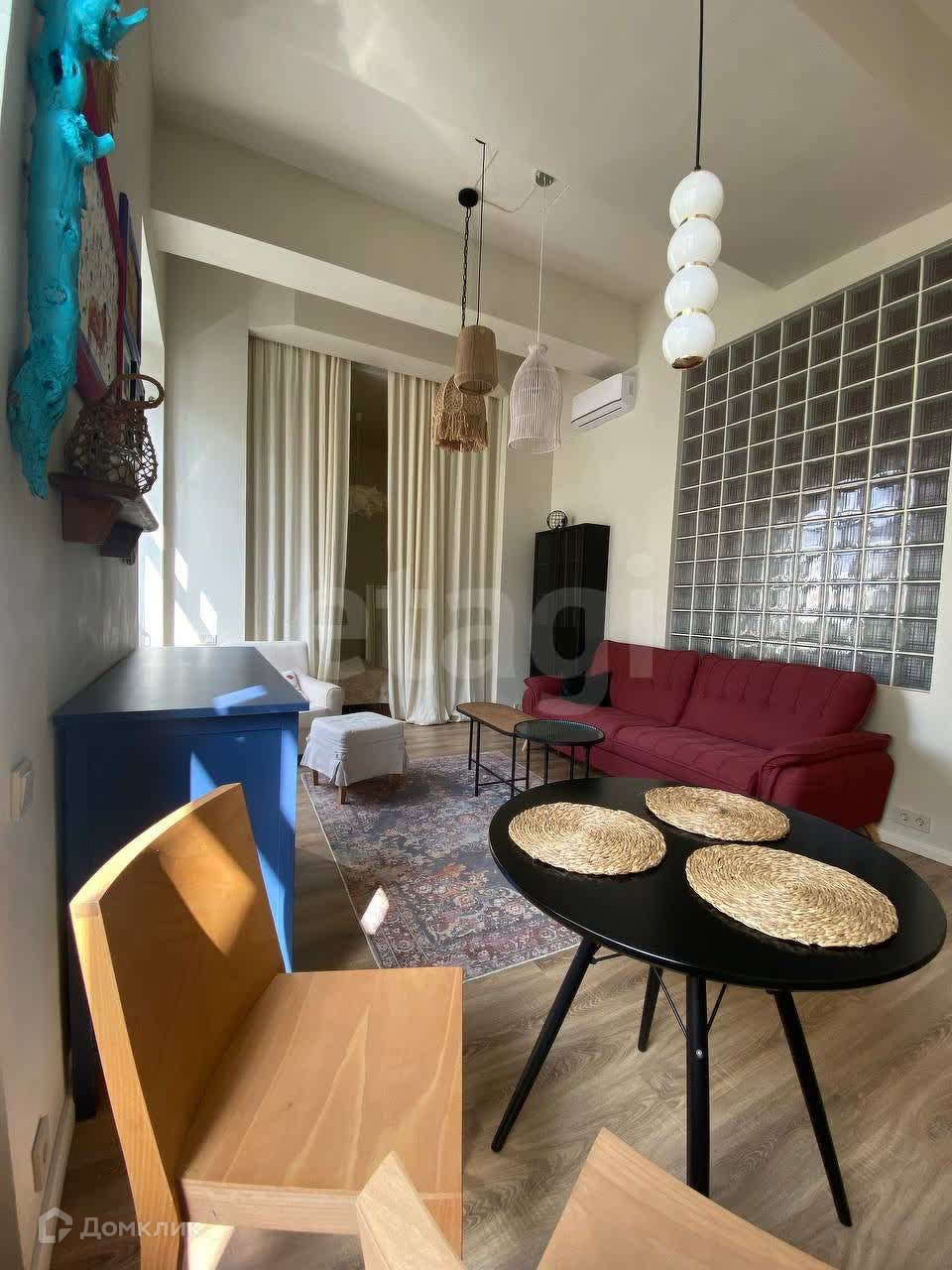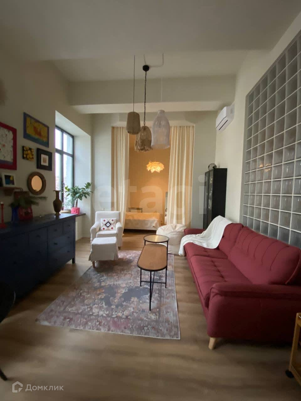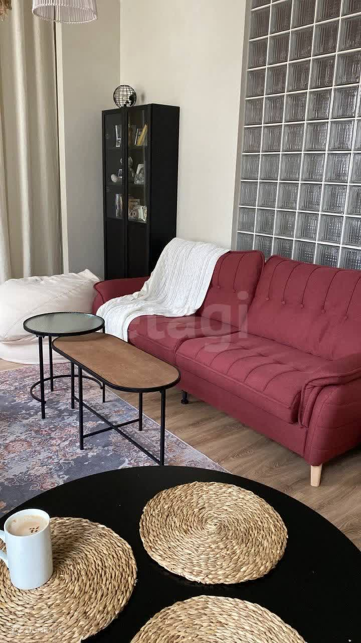 Уютные апартаменты полностью укомплектованные мебелью из магазина Лофт Дизайн и ИКЕА, а так же всей необходимой техникой для комфортного проживания. Просторная кухня гостиная поделена на зону отдыха и зону кухни. Отдельная ниша – зона спальни, закрыта шторами от основной комнаты, так же в этой зоне находятся большой встроенный шкаф (эмаль) для хранения вещей.