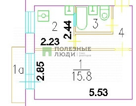 Жилая площадь 15.8 м2