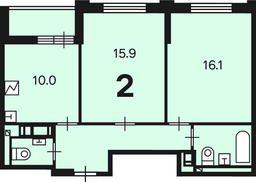Количество комнат 2