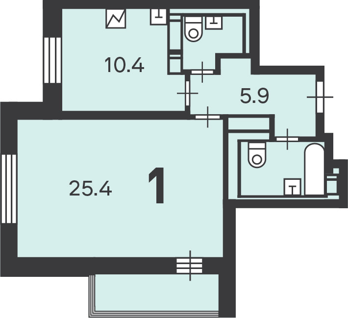 Жилая площадь 25.4 м2