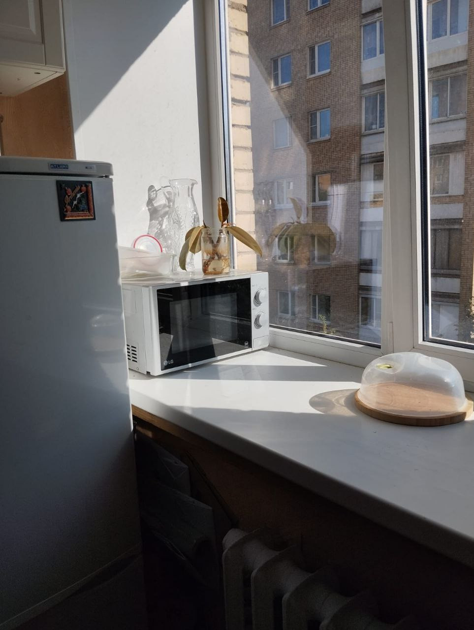 Ремонт в квартире косметический. Из больших плюсов - много света, одна солнечная сторона, широченные подоконники, большой отгороженный дверью тамбур, где у нас имеется собственный шкаф для хранения вещей, а также можно поставить велосипед, хорошие соседи.