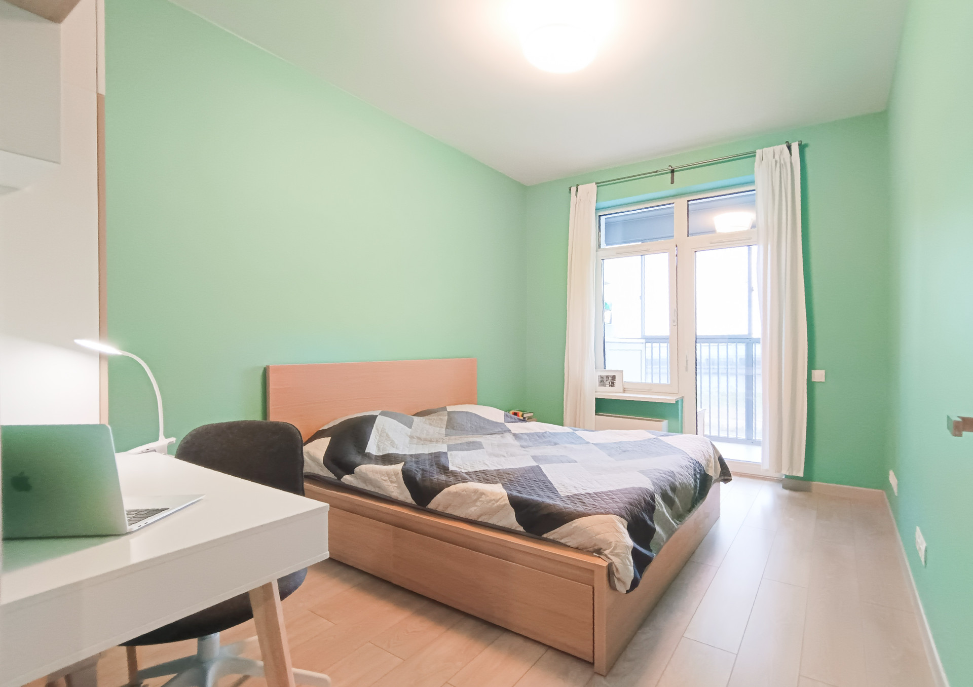 Полноценная "евро-двушка" - большая кухня-гостиная (19 м) и спальная (12 м) с лоджией.
