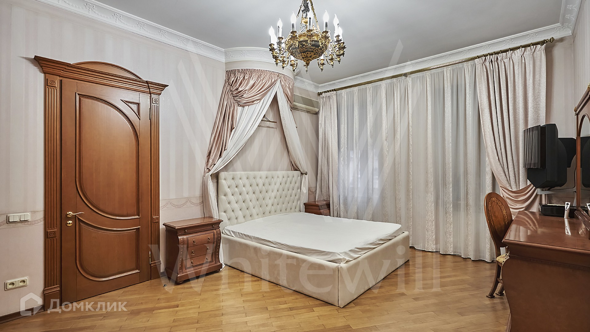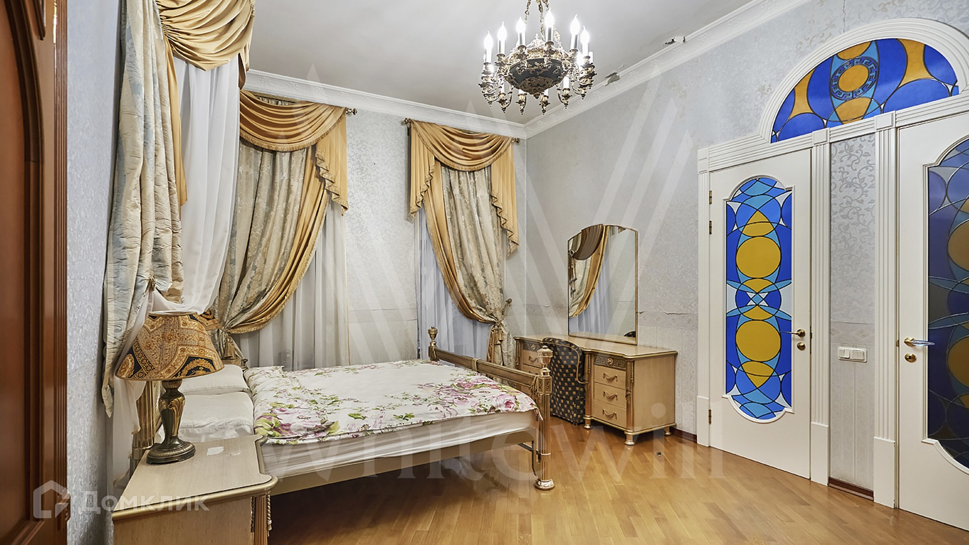ID 206 358. Квартира общей площадью 435 м² в особняке «Большой Головин переулок, 4» в исторической части города в Мещанском районе. Квартира занимает 3 этажа, есть лифт, на 2 и 3 этажах выполнена отделка в классическом стиле, на мансардном этаже — в современном. Планировка включает: две кухни-столовые, гостиную, десять спален, восемь санузлов, выход на две лоджии. Интерьеры укомплектованы мебелью и бытовой техникой, из окон открываются виды в уютный двор и на тихую улицу.