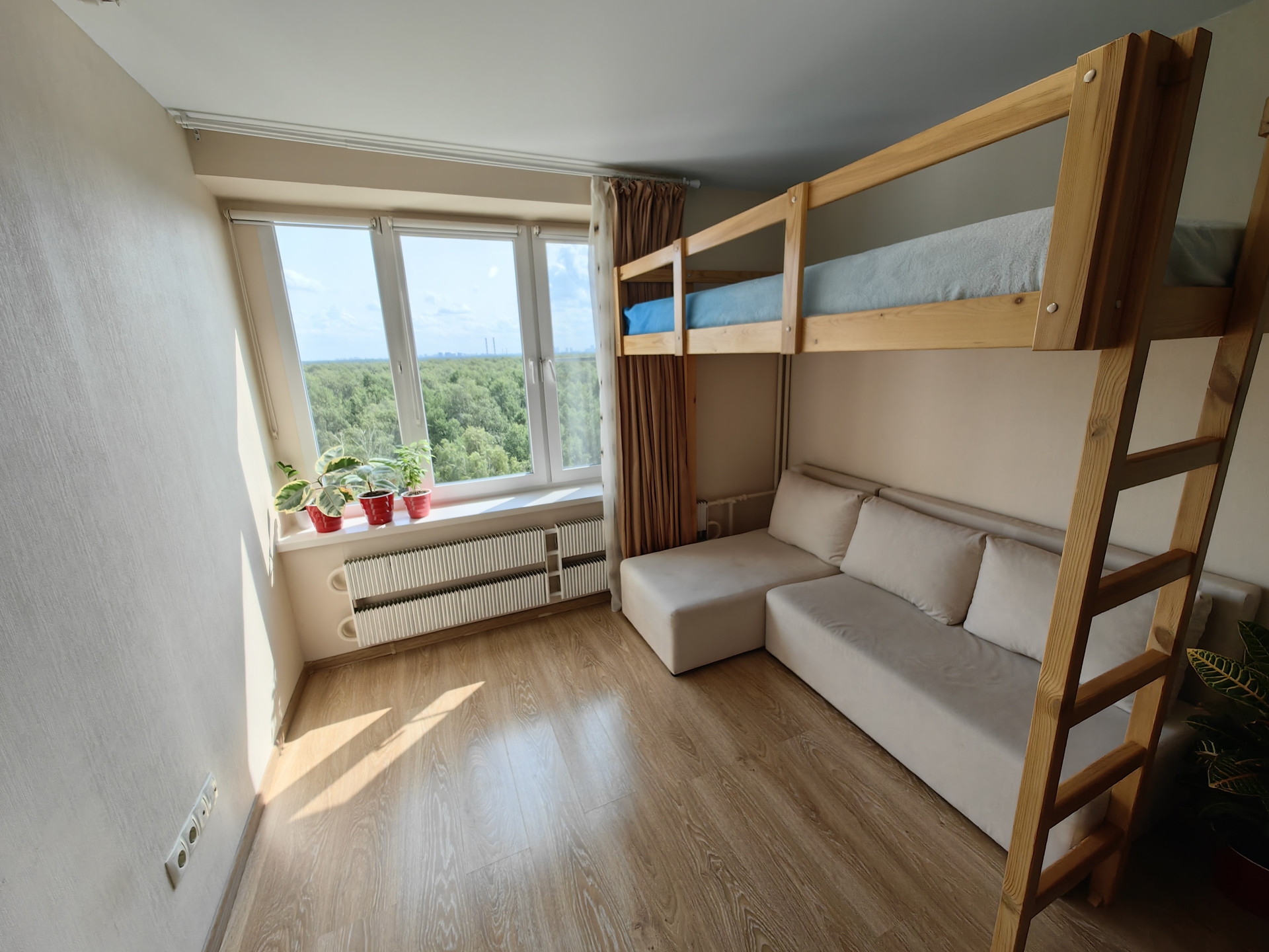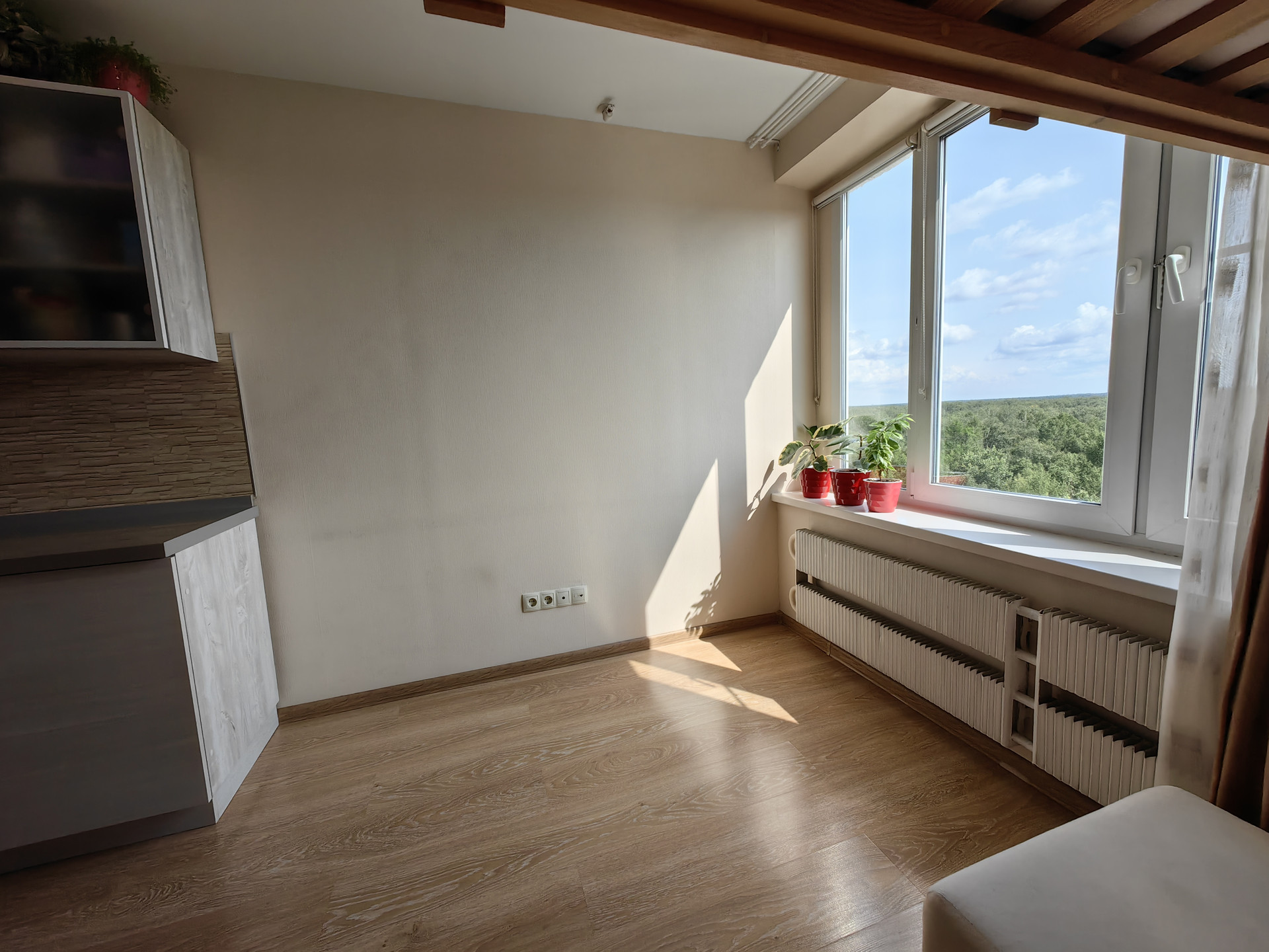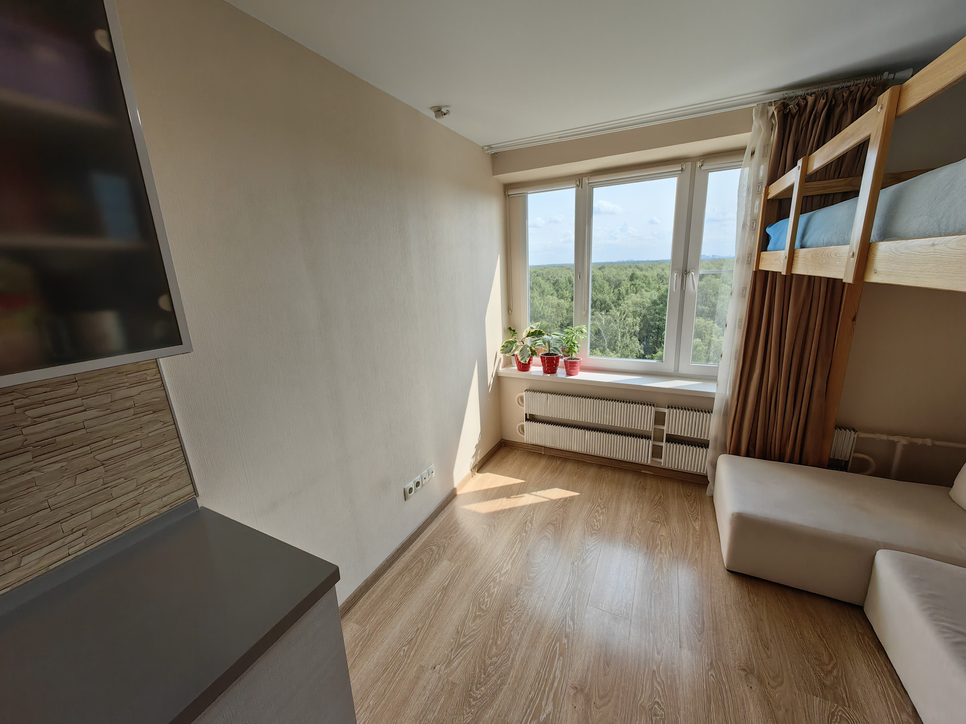 Огромный плюс: шикарный ВИД на национальный парк Лосиный остров, до которого всего 2 минуты пешком и на который выходят окна. Парк имеет статус национального парка, поэтому перед окном ничего не построят и вид не перекроется другим строением.
