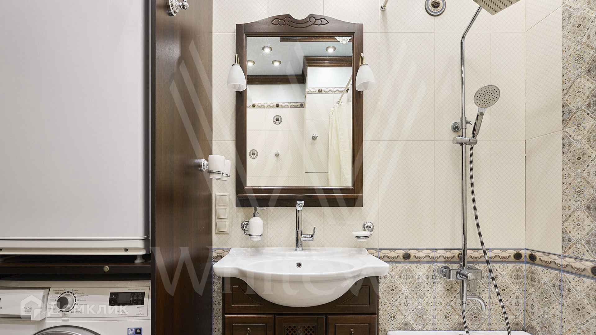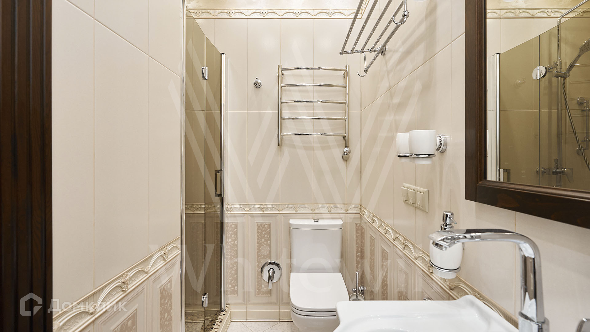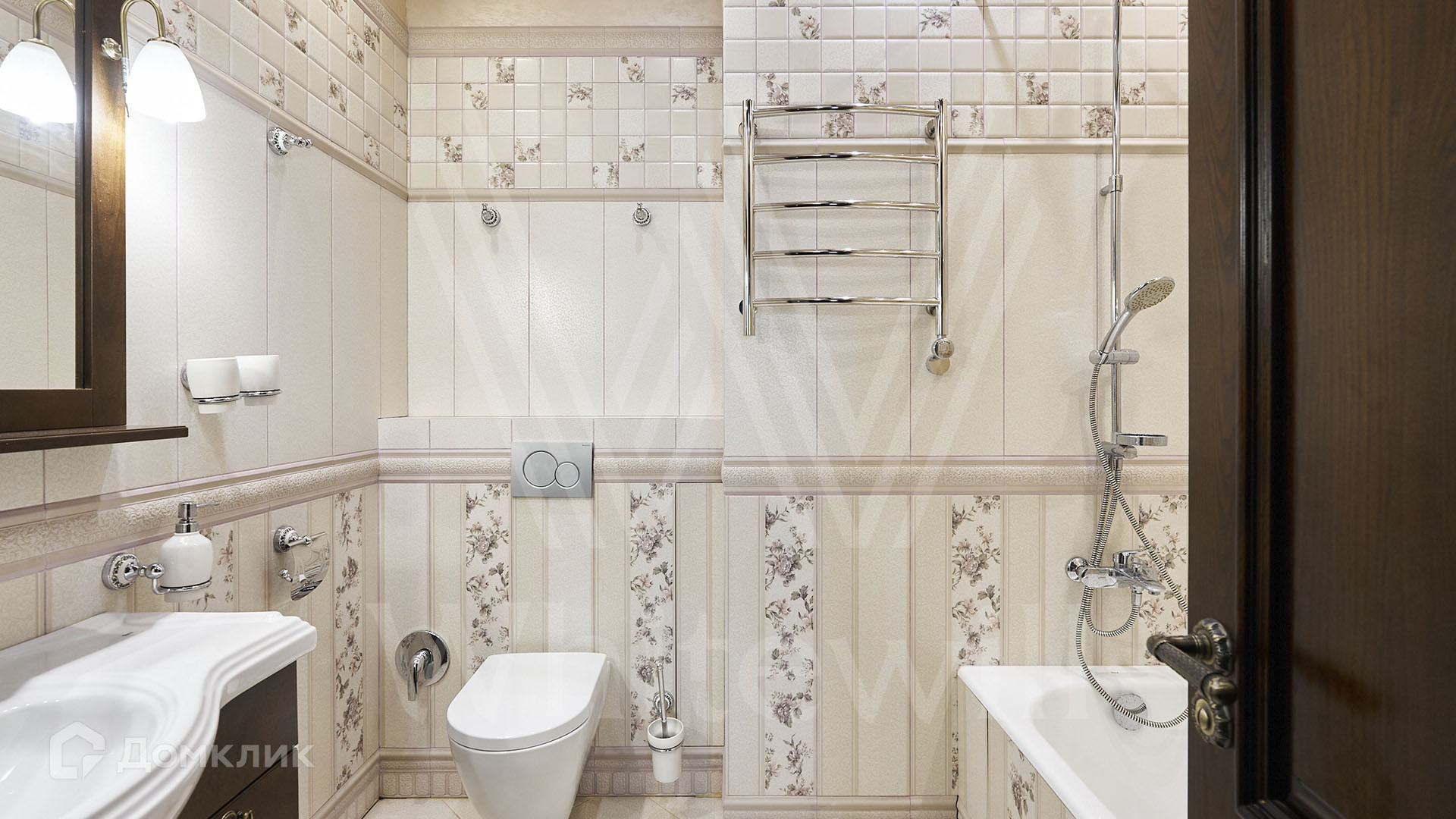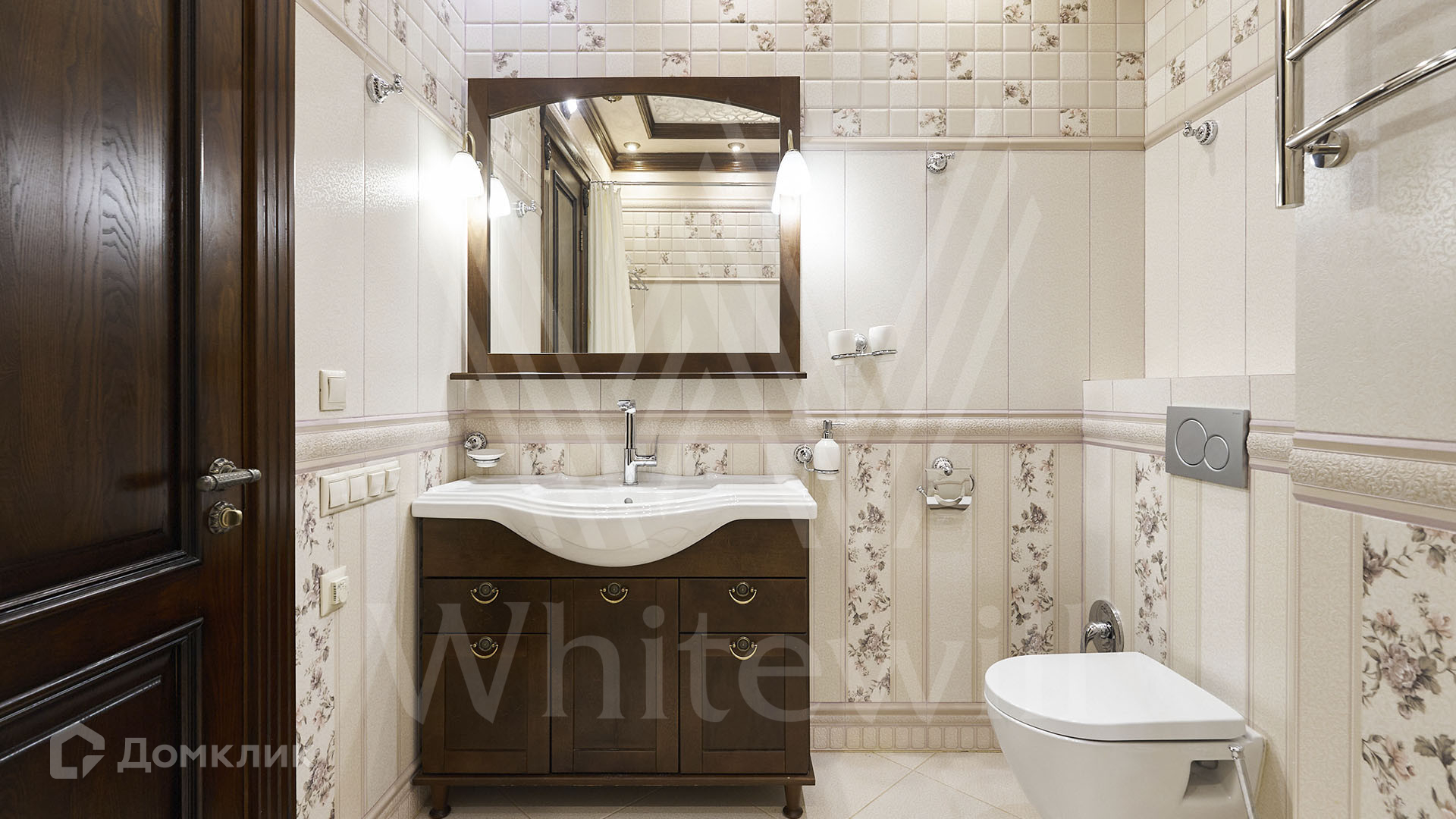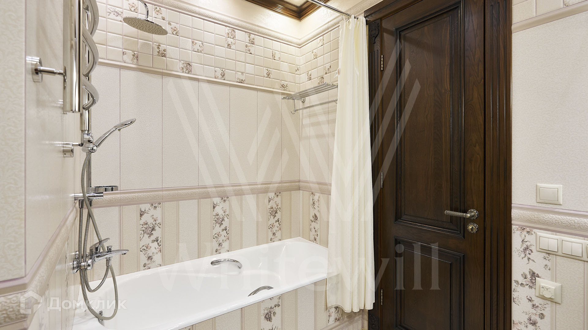 ID 197 474. Апартаменты с 2-мя спальнями общей площадью 100 м² в клубном комплексе Smolensky De Luxe. Выполнен дизайнерский ремонт в классическом стиле. Интерьер выдержан в цветах благородного дерева с мягкими акцентами бирюзы. В отделке использована натуральная древесина и камень. Полы выложены мрамором и тёмным паркетом. Кессонные потолки с резными узорами и золотистыми подвесными люстрами с декором из стекла.