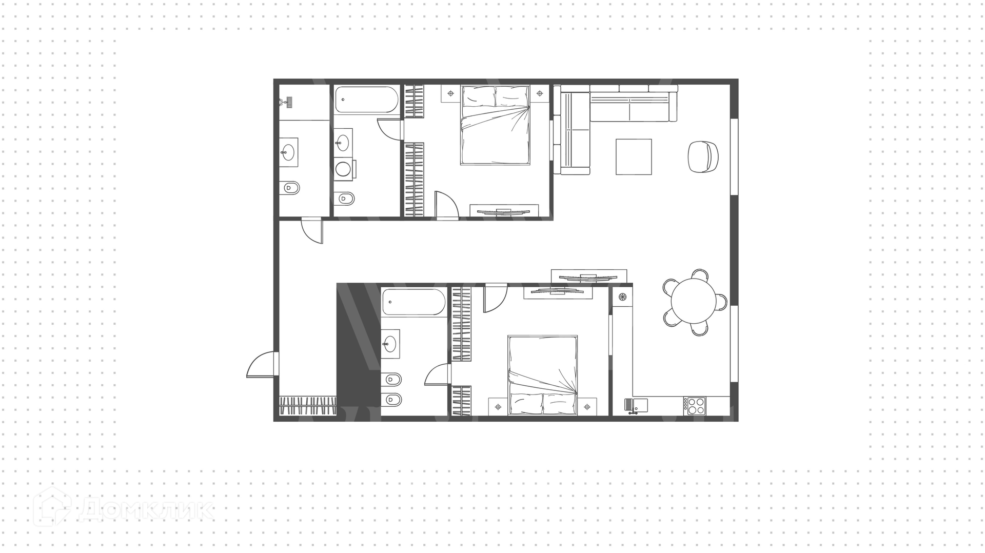 Санузел 2 совмещенный и 1 раздельный