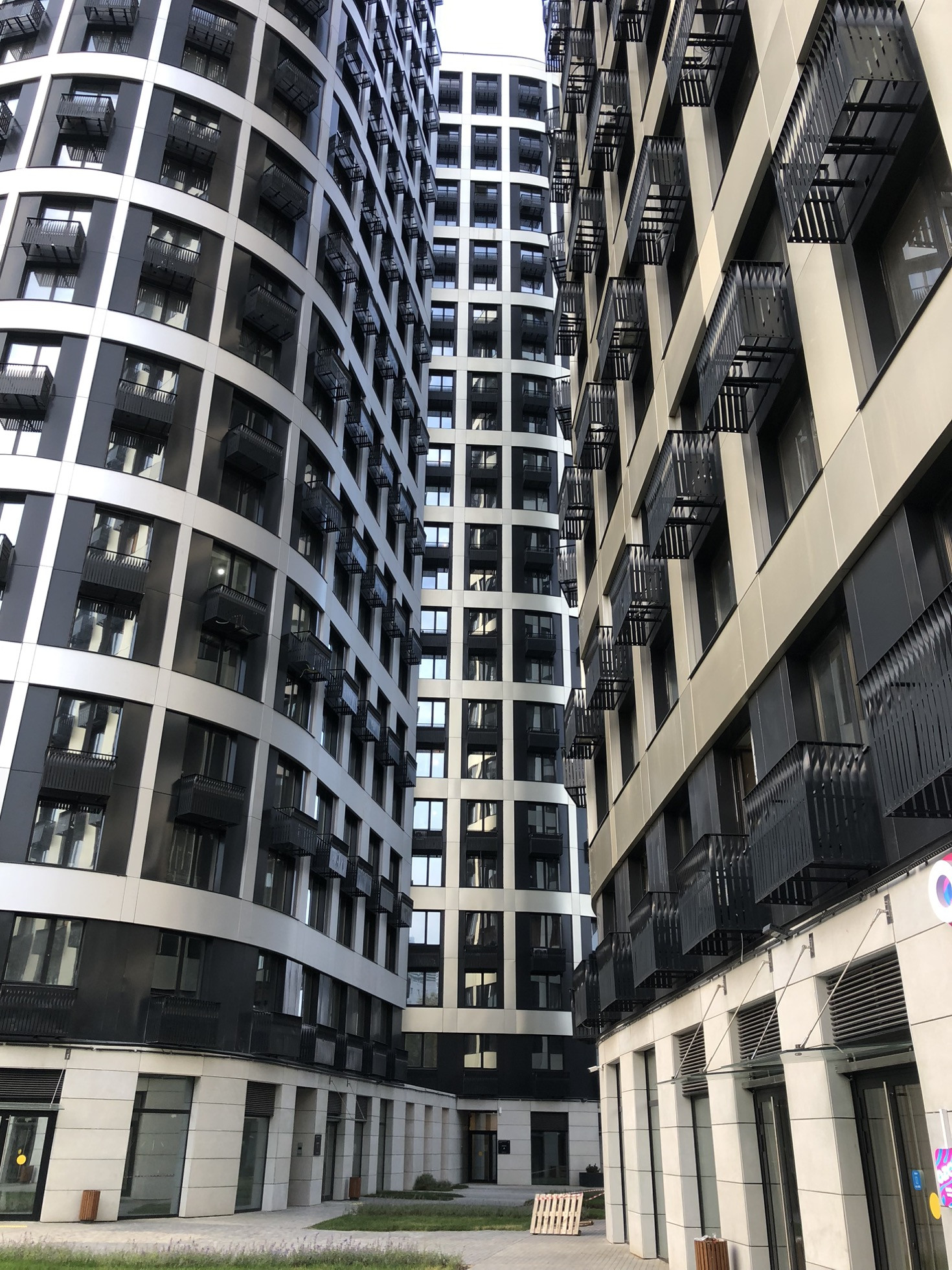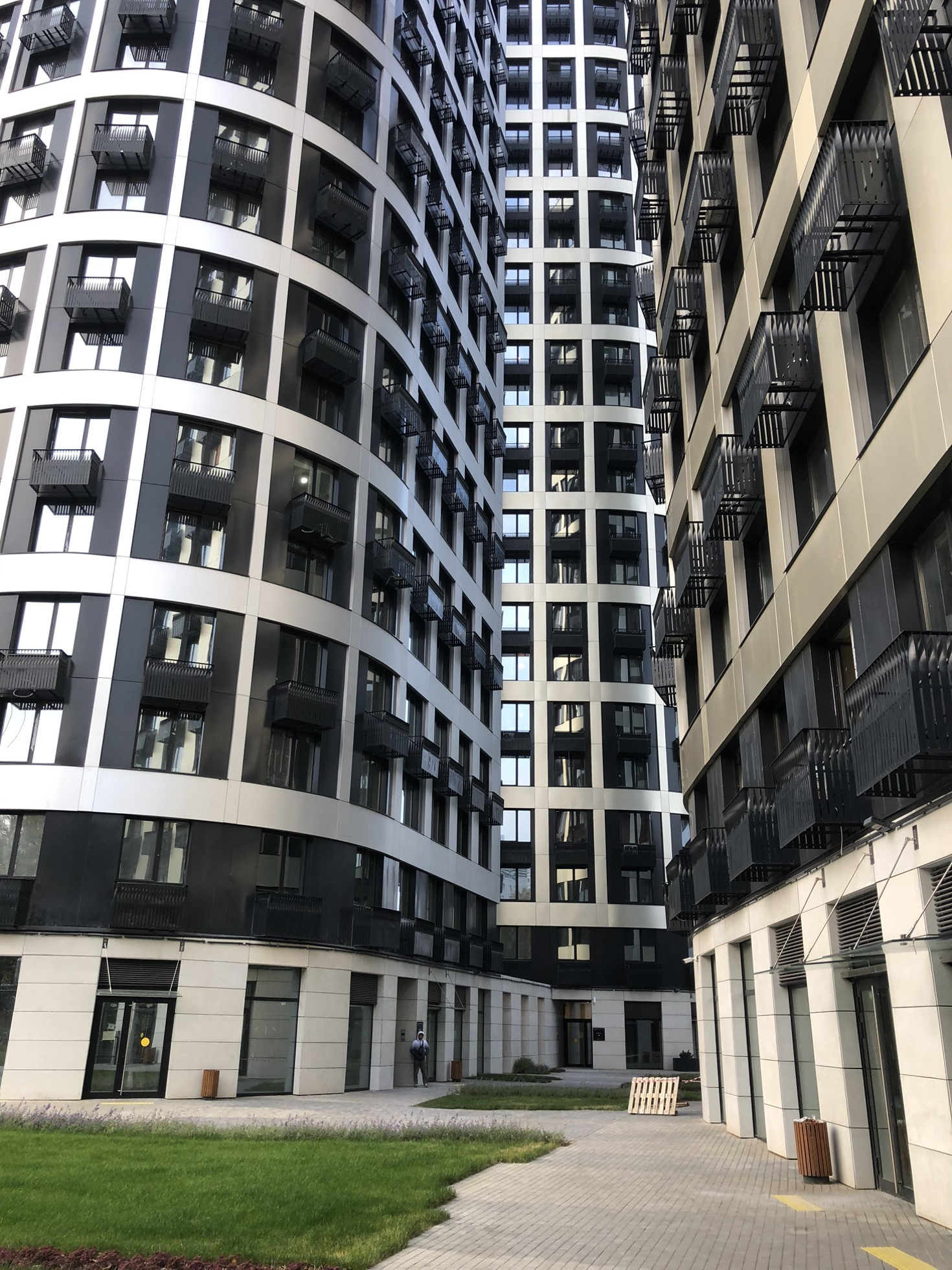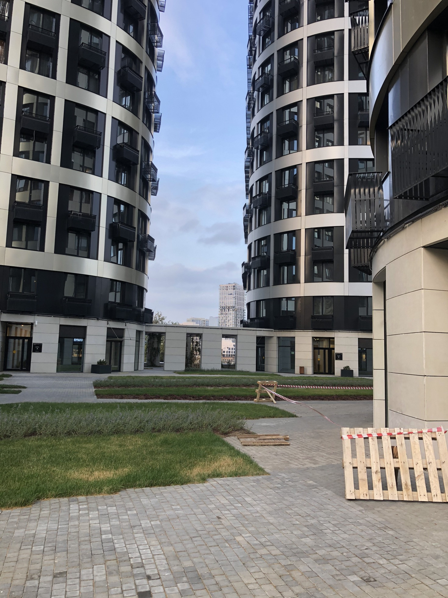 На внутренней территории комплекса предусмотрена уникальная концепция благоустройства: современный двухуровневый двор с тихой приватной зоной с живописными видами на Москва-реку на крыше стилобата,с детскими площадками, зоной для воркаута,и целым полем для игры в волейбол.