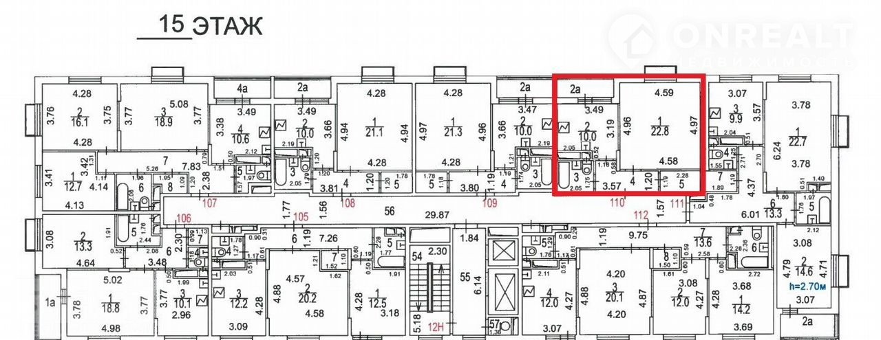 Жилая площадь 22.8 м2