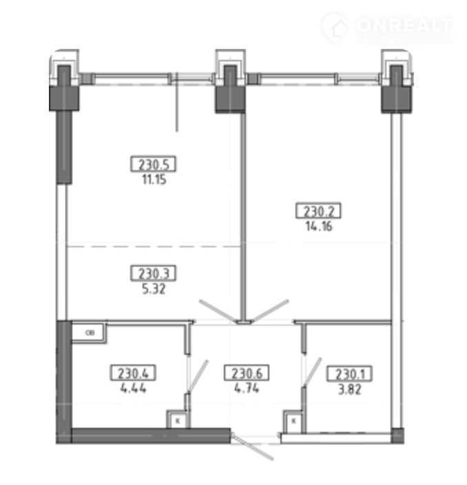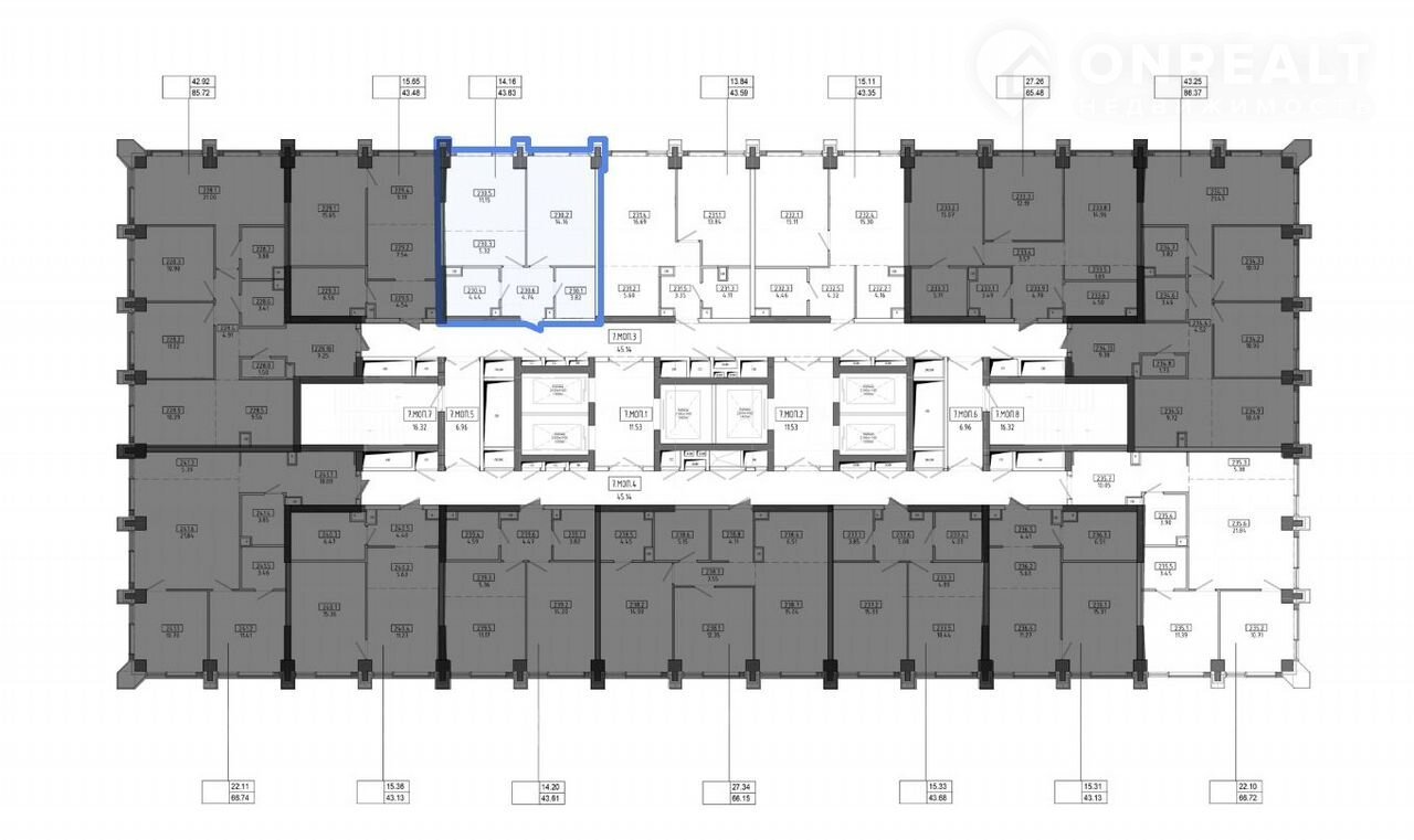 Общая площадь 43 м2