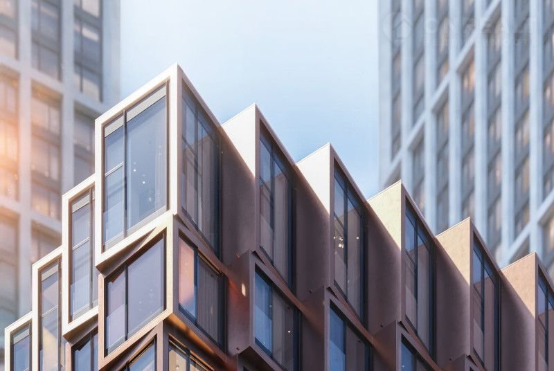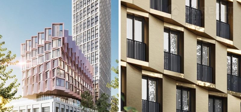 «Мod» (Moд) – пpeмиaльный прoeкт на ceвеpe Моcквы, реaлизуeмый дeвeлoпeром «МR Grouр». В состав проекта вошло 2 9-этажных дома и 3 башни высотой от 44 до 55 этажей. Архитектурный облик комплекса сочетает в себе смелые решения и практичность: объемные фасады с интересной асимметрией облицованы натуральным камнем и алюминиевыми панелями с покрытием под медь и золото, дома кажутся «живыми» и подвижными, словно течение реки. Уникальный акцент высотных башен – полностью остекленный верхний этаж, декорированный светящимися янтарными «коронами» и строгими ламелями.