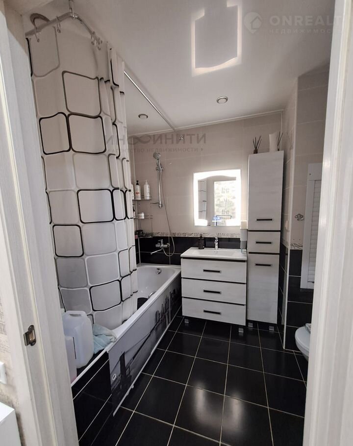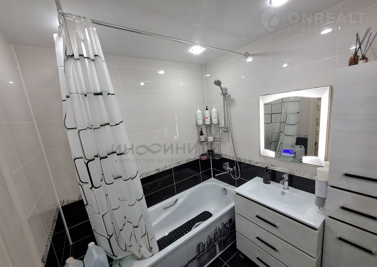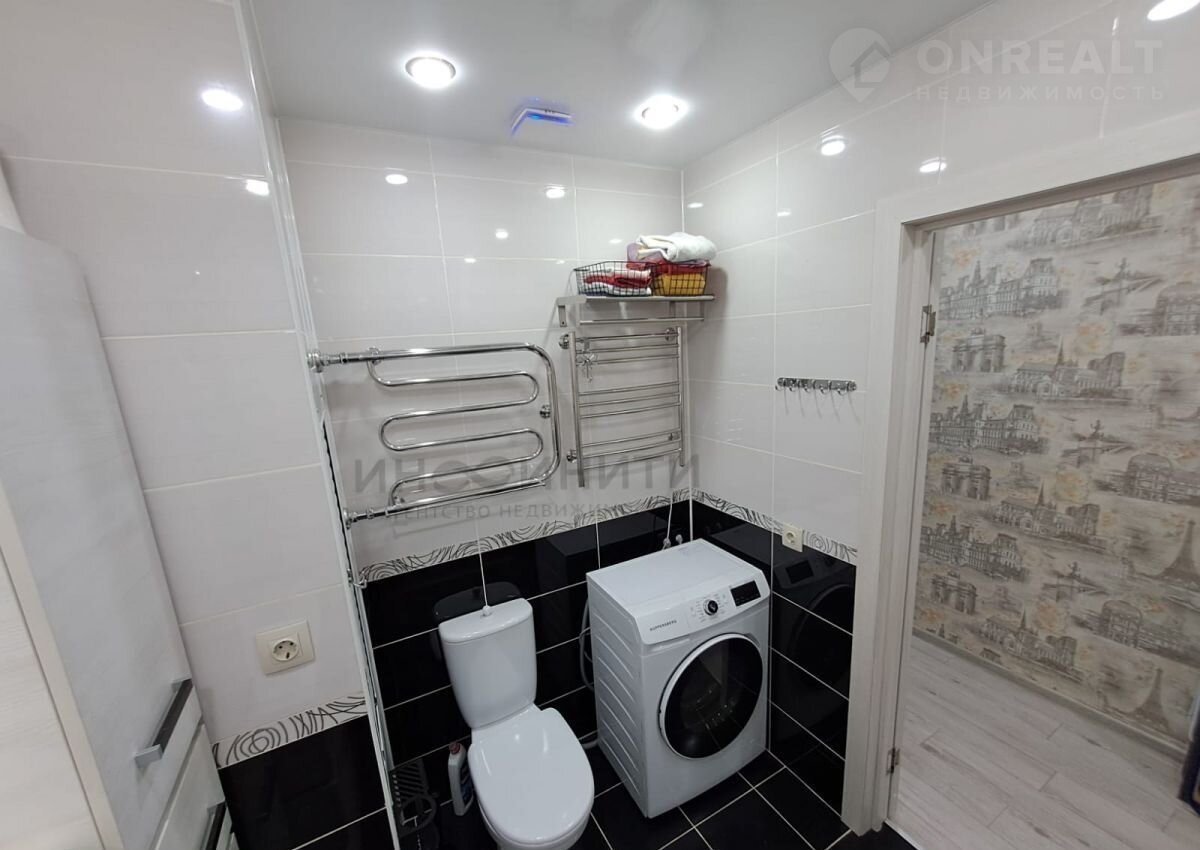 Два санузла: один — с ванной и точечным светом, второй — гостевой, лаконичный и функциональный с крытой сантехникой.