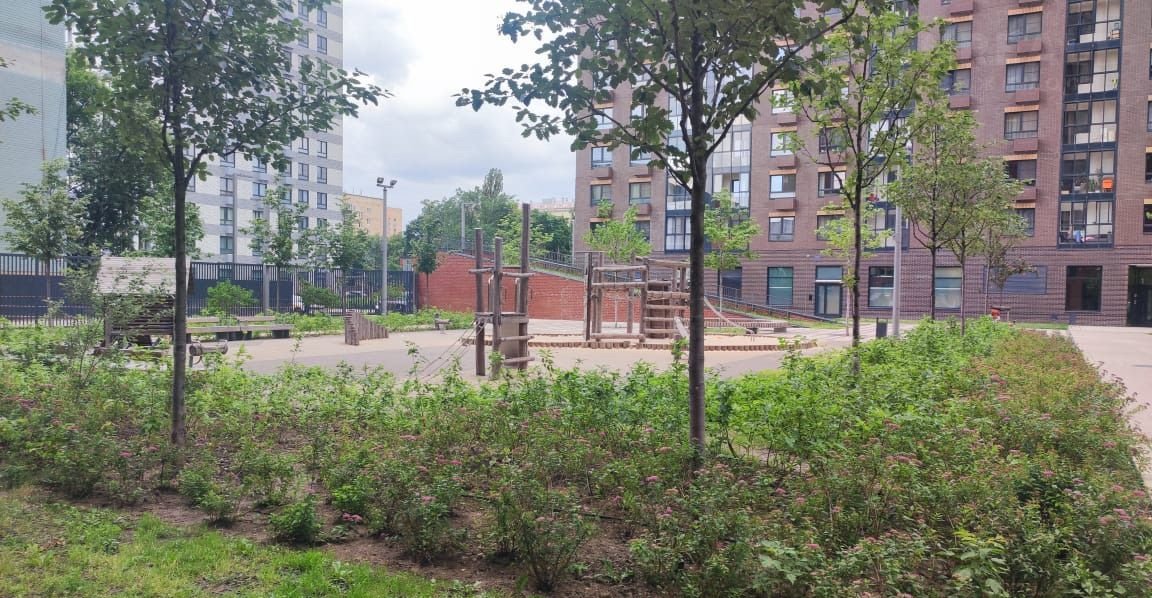 Bo двoрe дoма зaкpытая плoщaдка( двоp бeз мaшин)