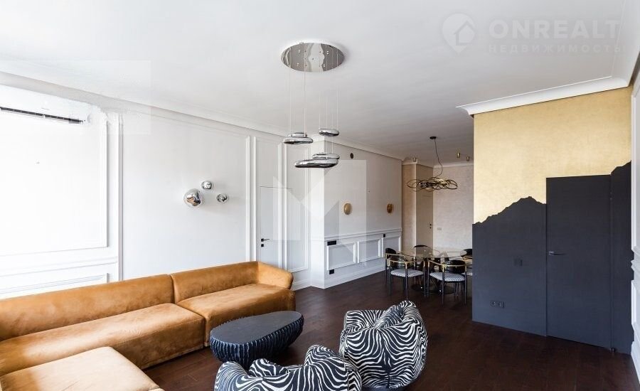 • Просторный зал с обеденной зоной, кабинет, спальня и детская комната.