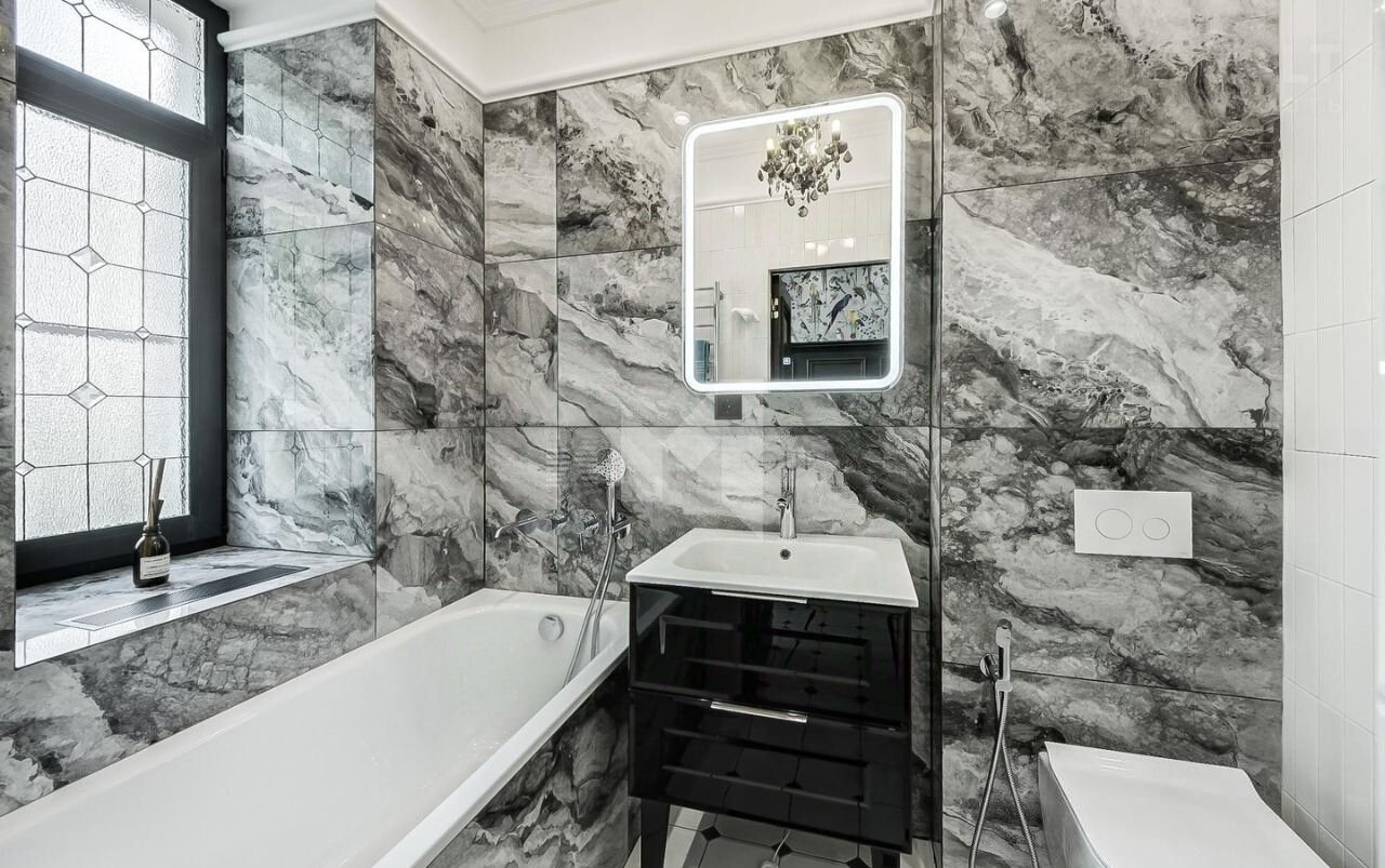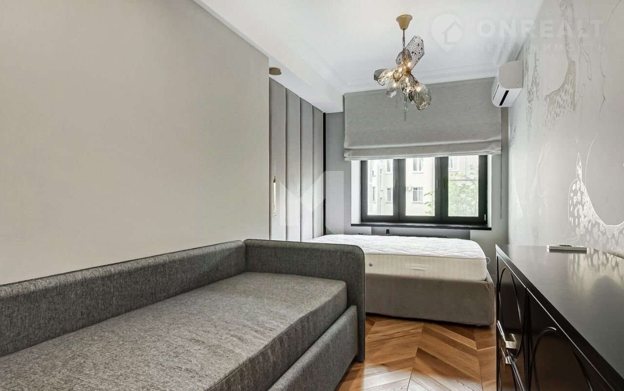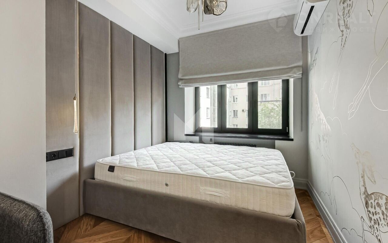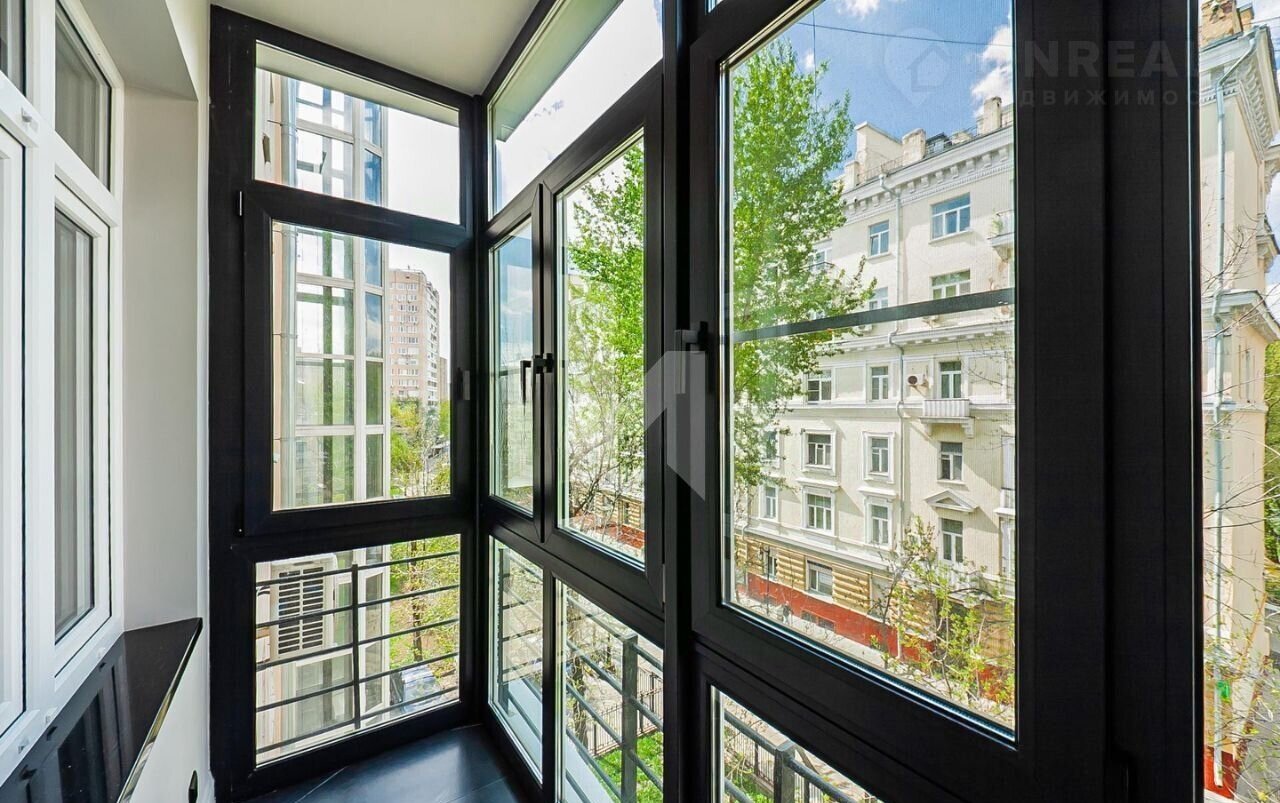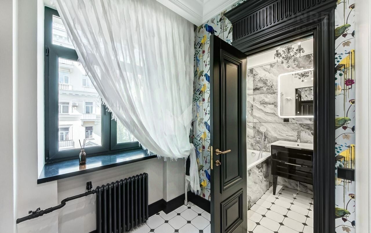 Окна квартиры выходят во двор, утопающий в зелени, а также на Большую Бронную улицу, что гарантирует тишину и спокойствие. Высота потолков составляет 3 метра, что создает ощущение простора.