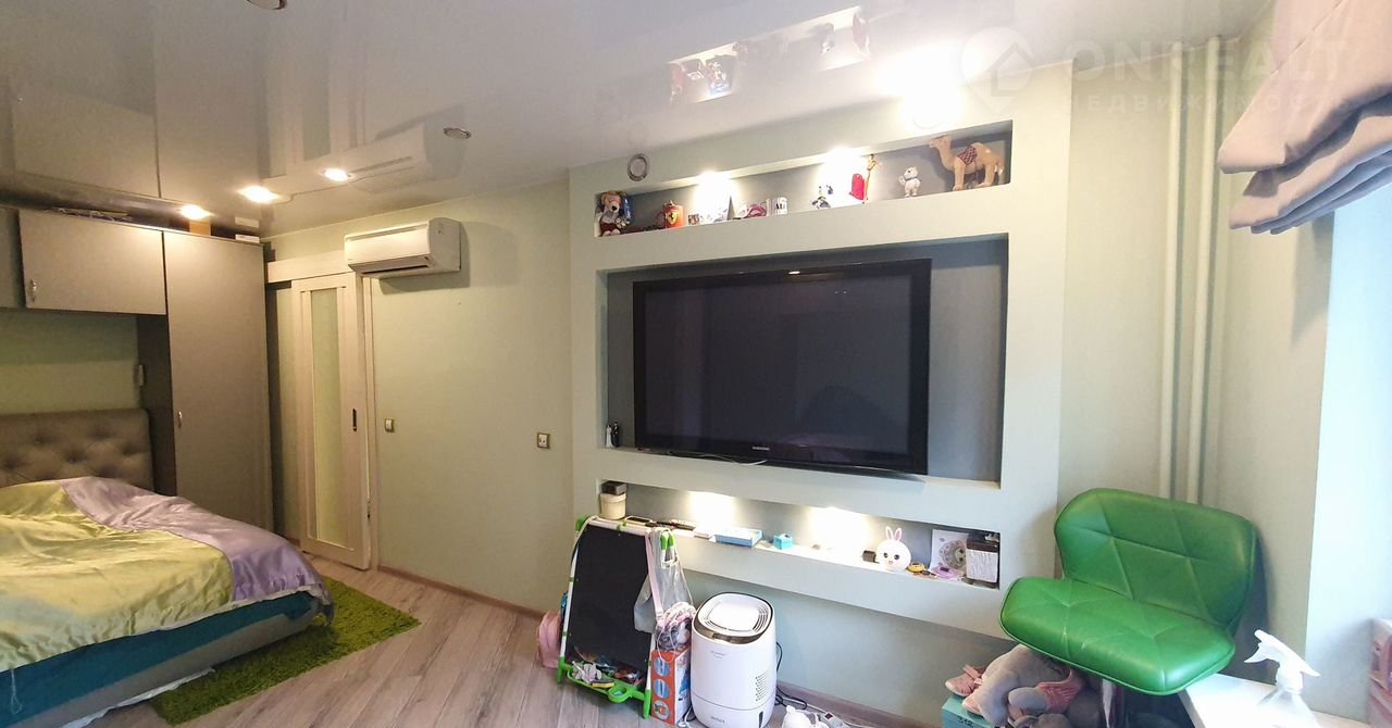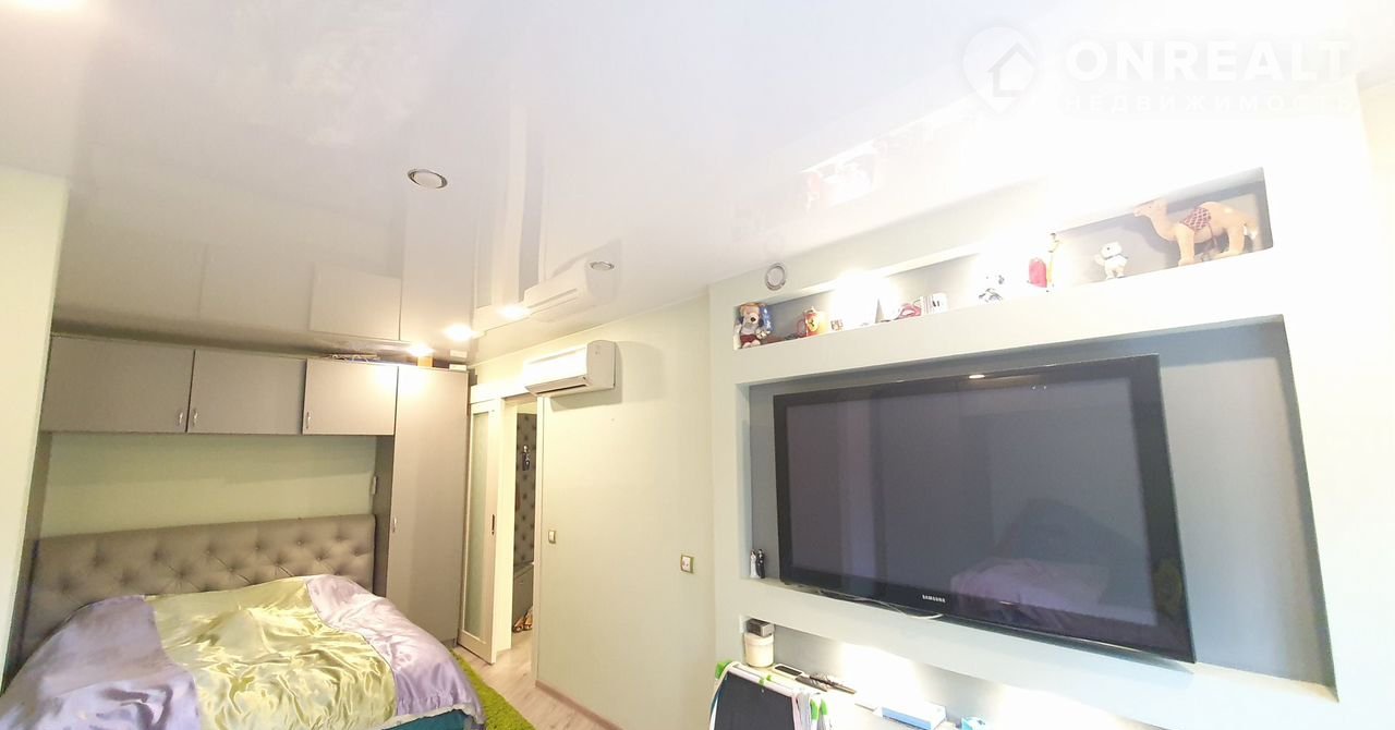 Спальня разделена на две зоны, можно установить перегородку – есть закладная на потолке. Кондиционер Dаikin, кабели под музыкальную систему, откатная дверь.