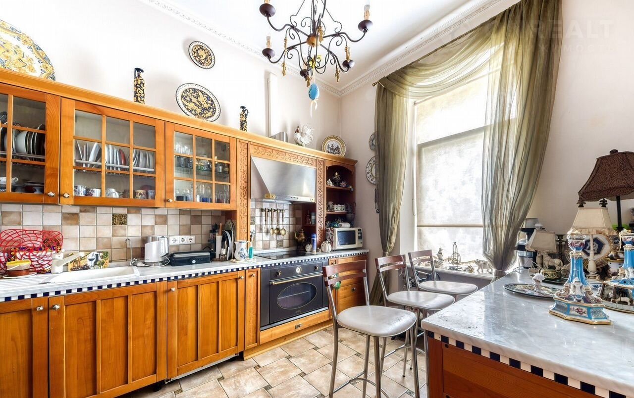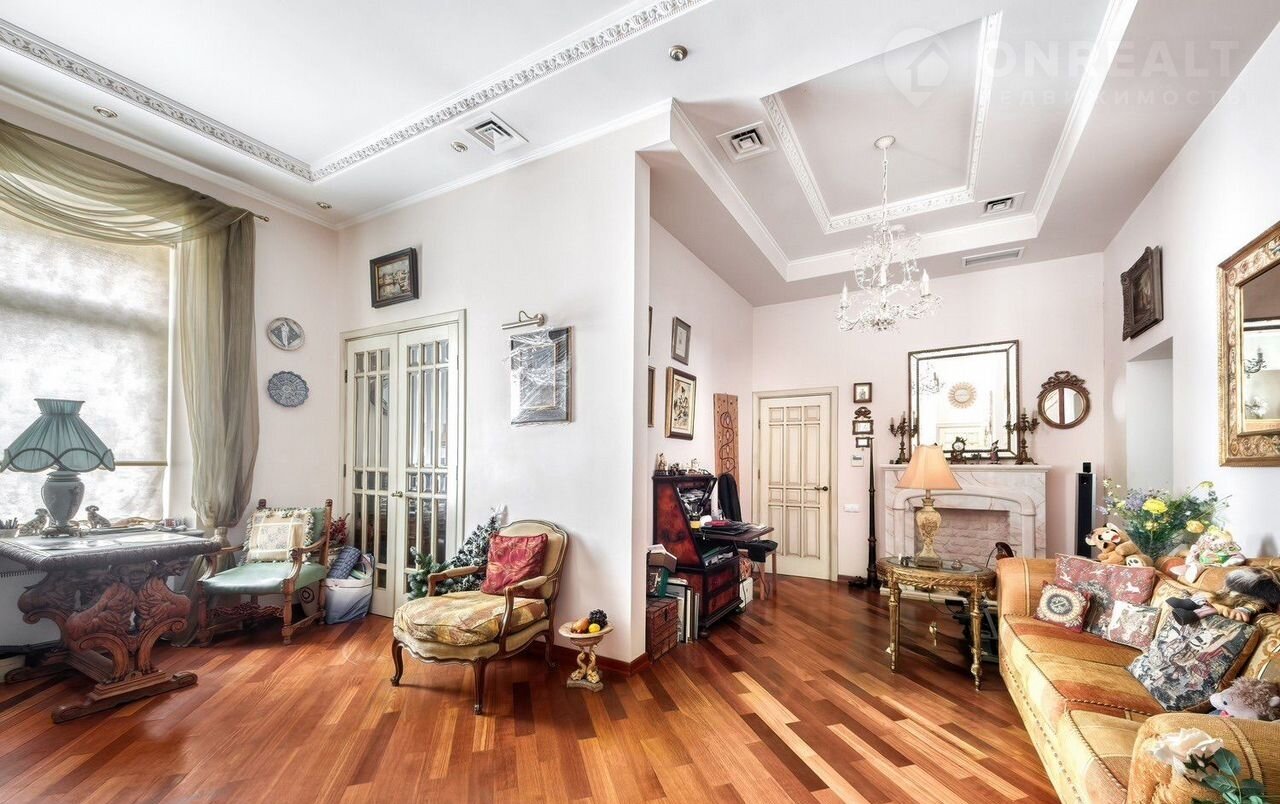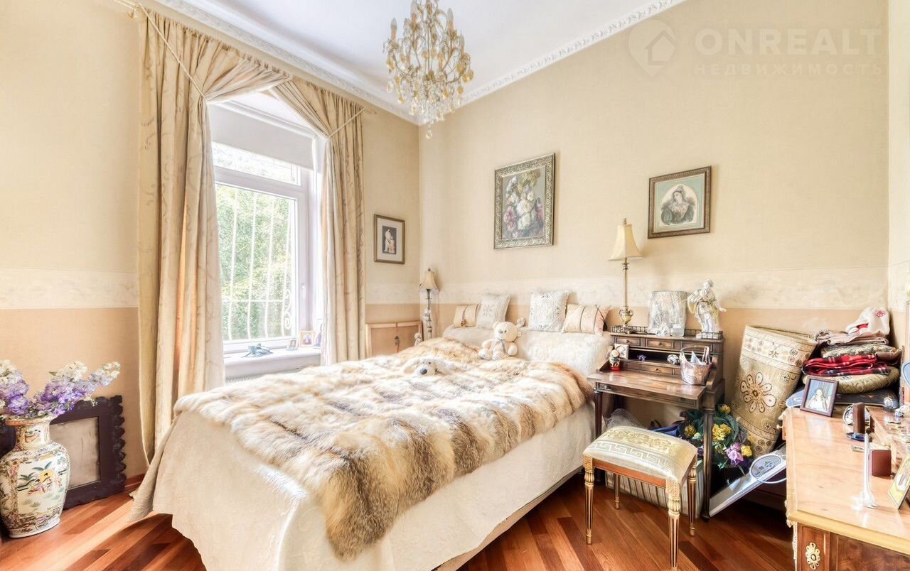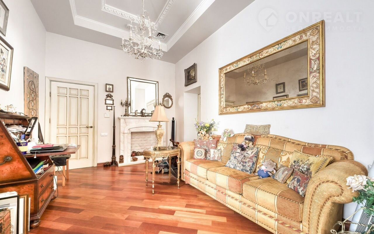 Дом во дворе. Лифт. В подъезде 7 квартир. Потолки 3.20 м, окна во двор. Кухня-гостиная, спальня, кабинет, 2 санузла. Паркет красного дерева, двери между комнатами - дерево и гранёный хрусталь.