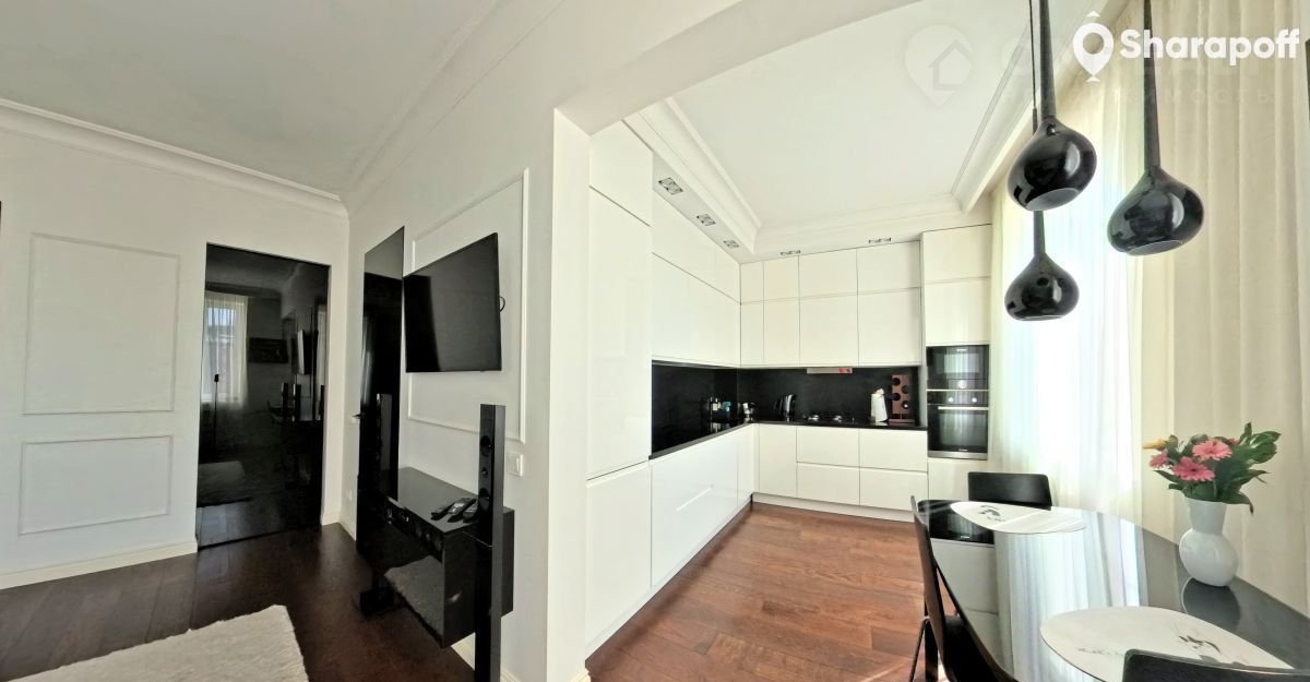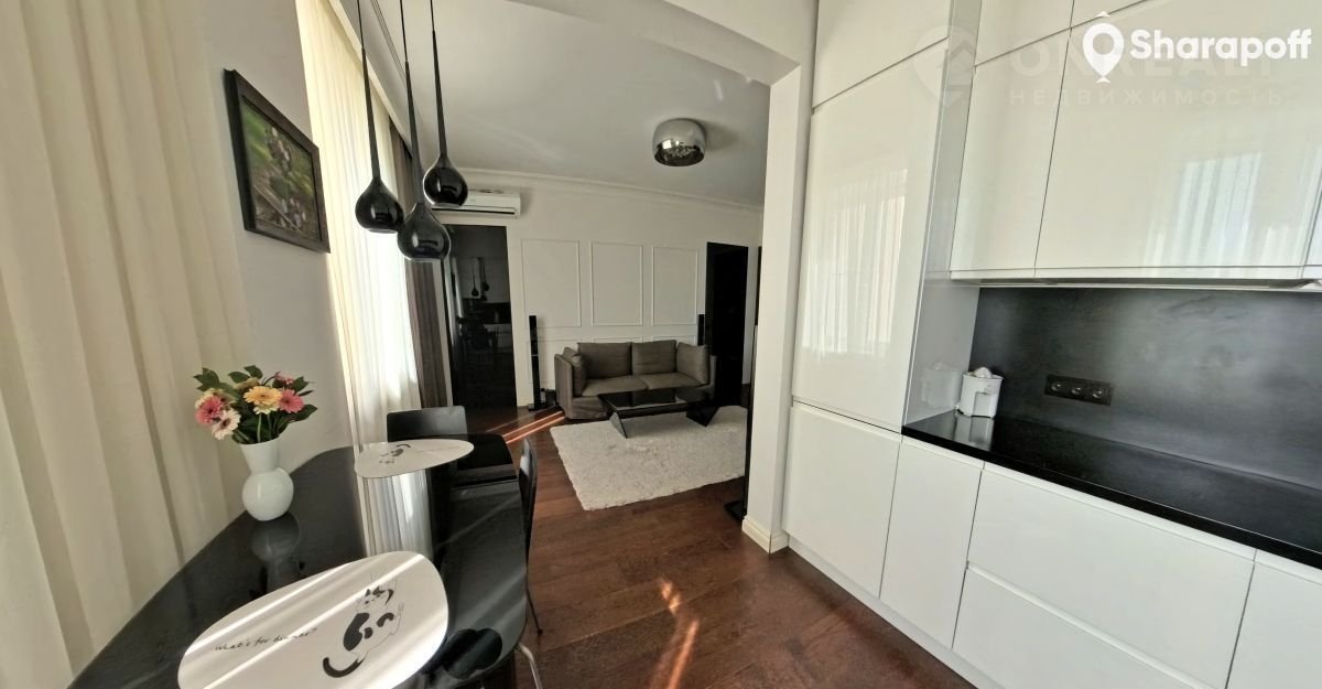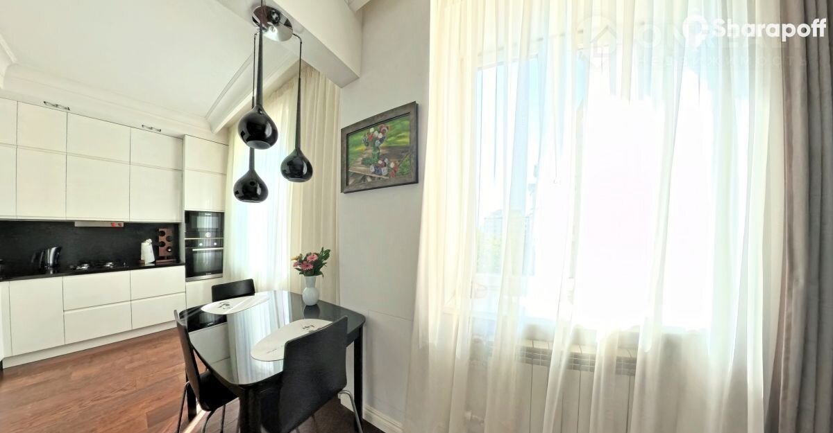 Каждый сантиметр квартиры продуман и окутан заботой и любовью! Интерьер квартиры выполнен в стиле современной классики авторского дизайна. Итальянская кухня со встроенной немецкой техникой. Напольное покрытие во всех комнатах – инженерная доска производства Finех из массива дуба. Все элементы мебели выполнены по индивидуальному заказу. Плитка в ванной итальянского производства, сантехника Grоhе, в нише встроенный бойлер. Так же квартира оборудована сплит системой.