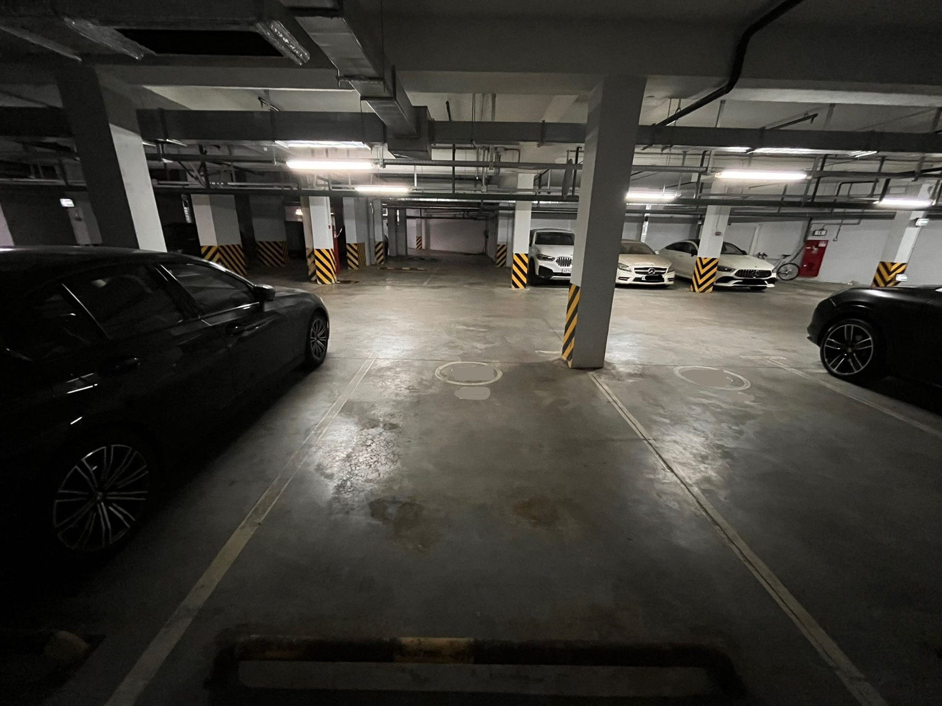 Машиноместо в центральной части паркинга. Ближайший выход на улицу в 20 метрах. (Ко второму подъезду корпуса 4)