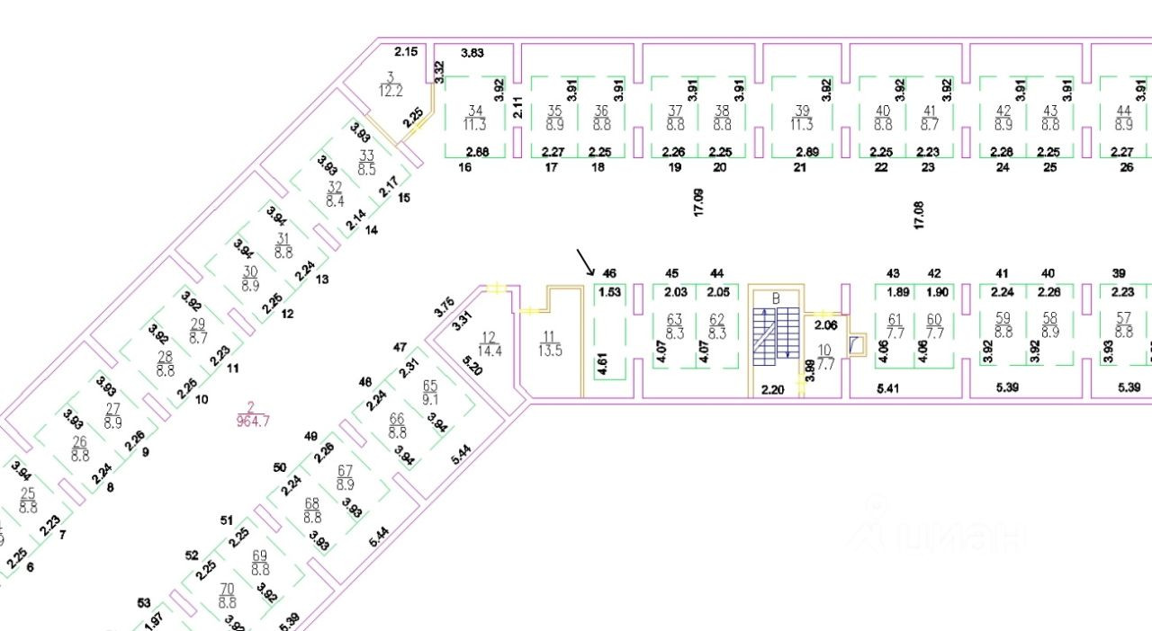 Хорошее месторасположение, рядом с выходом (место 46). В задней части машиноместа есть место для организации полок для хранения.