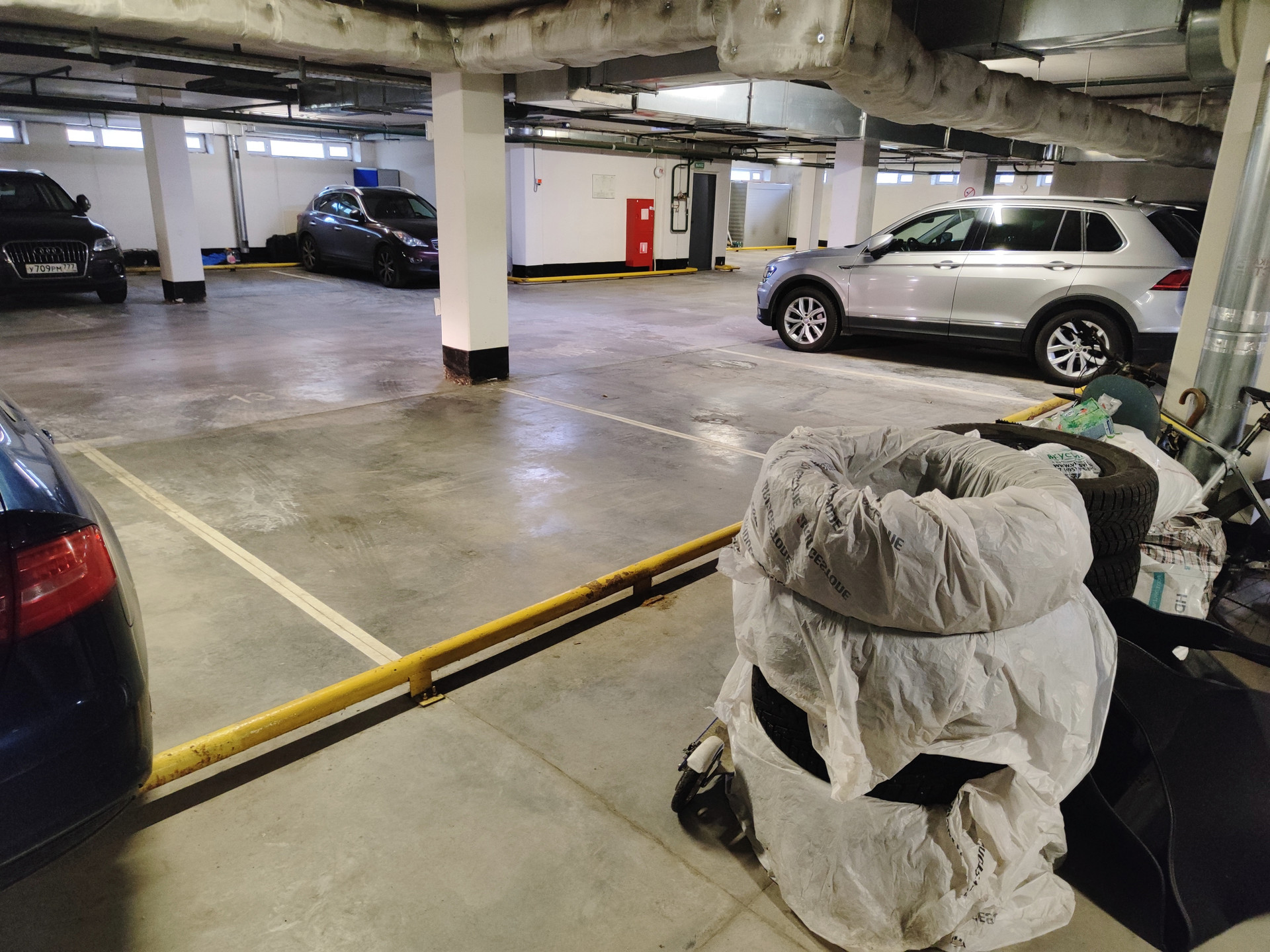 Также, есть второе машиноместо, расположенное рядом, что позволяет полностью использовать пространство между автомобилями для хранения шин, велосипедов и других вещей. Продаются оба или по отдельности. Цена указана за одно машиноместо. Торг!