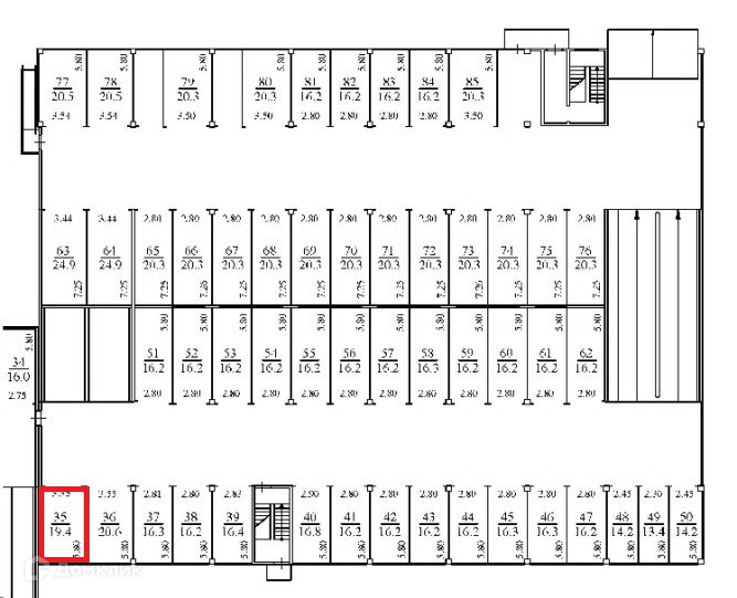 Общая площадь 19.4 м2