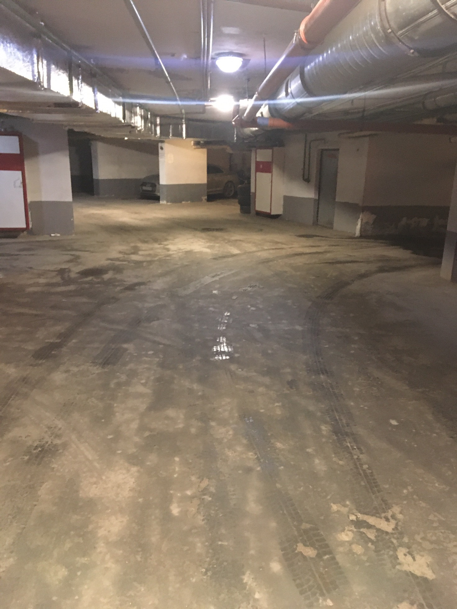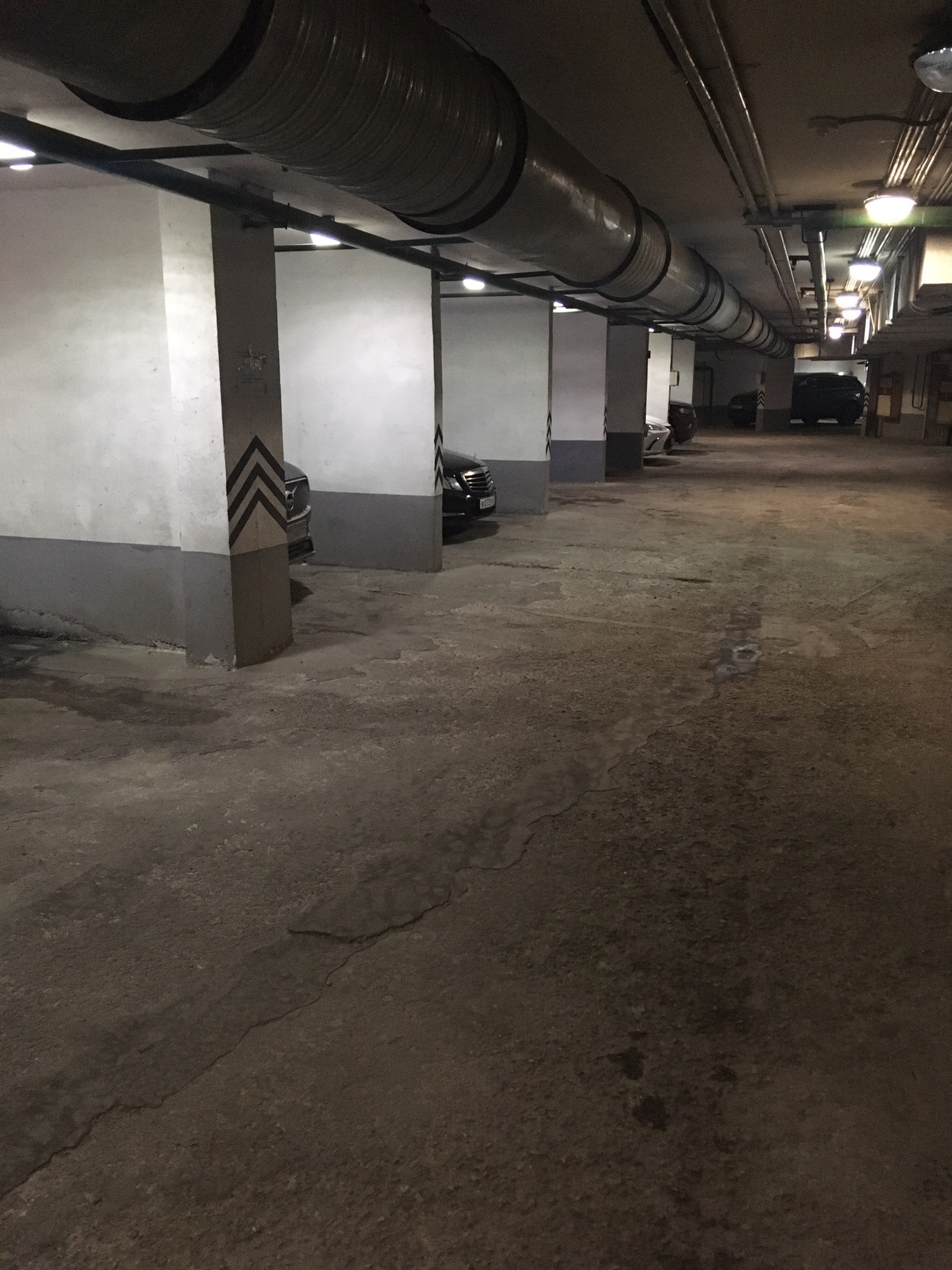 Большое машиноместо прямоугольной формы, без торчащих сверху труб и других конструкций, создающих неудобства при заезде.
