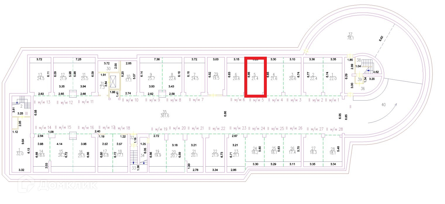 Общая площадь 21.4 м2