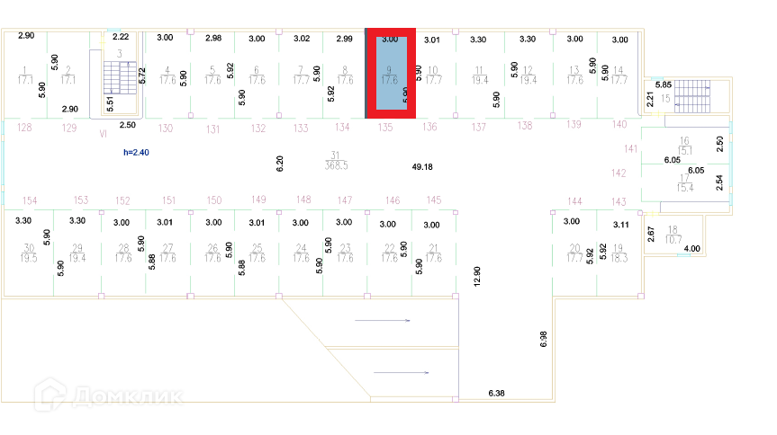 Общая площадь 17.6 м2